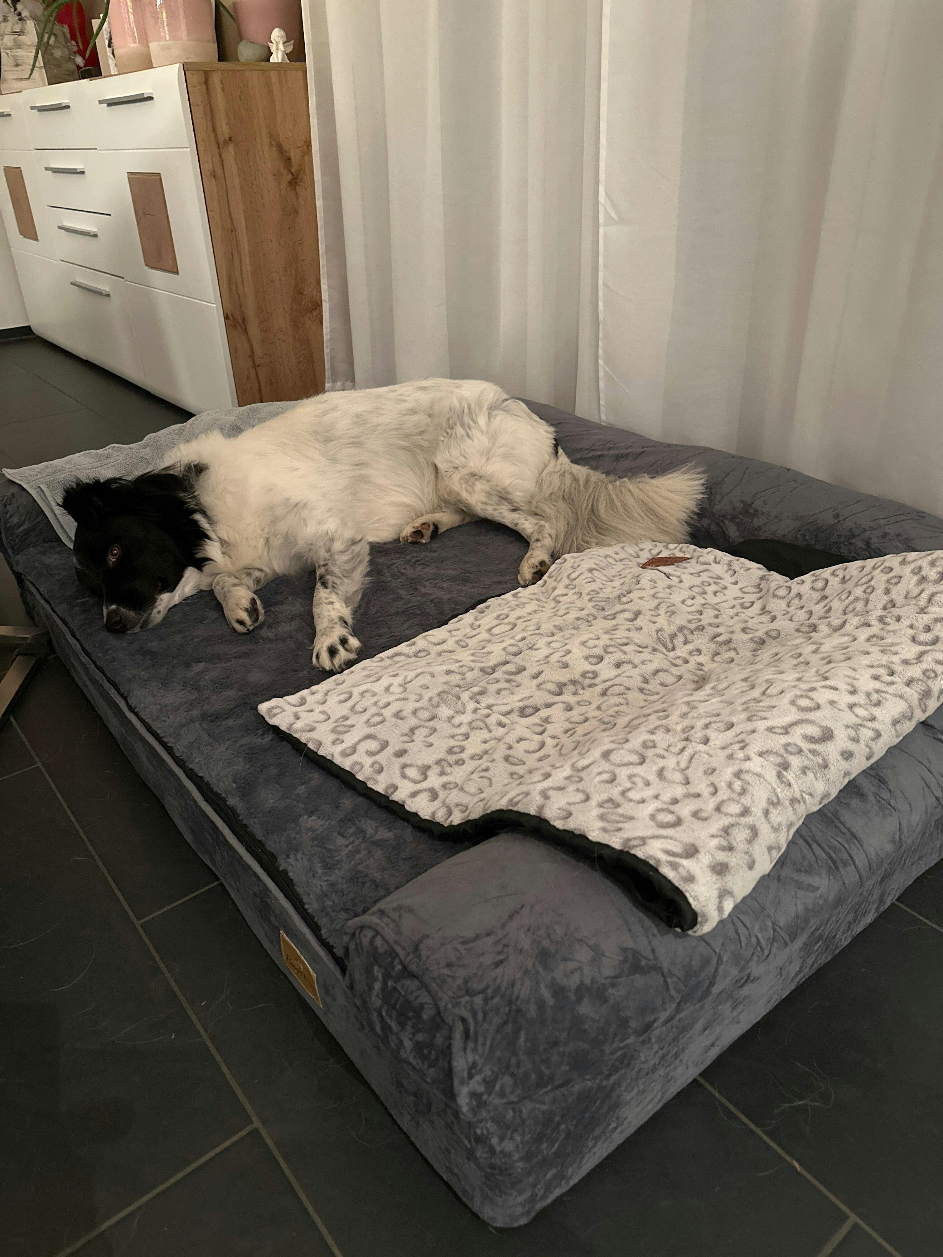Nach einem langen Spaziergang durch Wald und Wiese freut sich dein pelziger Freund auf einen Ort, an dem er zur Ruhe kommen kann. Doch wenn das Hundebett zu dünn gepolstert ist oder nach kurzer Zeit durchgelegen wirkt, wird der Schlaf deines Vierbeiners unruhig. Genau hier setzt dieses orthopädische Hundebett an. Es wurde speziell entwickelt, um deinem Hund nicht nur ein weiches Plätzchen zu bieten, sondern seine Gelenke zu entlasten und die Regeneration zu fördern. Mit 135cm x 100cm x 24cm ist es grosszügig für deinen vierbeinigen Begleiter bemessen. Im Inneren wartet orthopädischer Schaum, der sich punktgenau an die Körperform deines Hundes anpasst. Das entlastet Hüften und Wirbelsäule spürbar – besonders wichtig für ältere Tiere oder solche mit Gelenkproblemen. Dein Hund kann sich in den flauschigen Plüschbezug einkuscheln, der von einer 12cm dicken Füllung gestützt wird und durch die weiche, angenehme Liegefläche erholsamen Schlaf geniessen. Die Oberfläche hält Urin und Wasser ab, ohne unangenehme Gerüche zu hinterlassen. Zudem ist der Bezug maschinenwaschbar, widerstandsfähig und kratzfest, ideal für lebendige Hund und wenn es mal wieder etwas wilder zugeht. Dank der wasserabweisenden Oxford-Unterseite kannst du das Bett auch draussen nutzen – auf dem Balkon, der Terrasse oder im Garten. Tipp: Wenn du das Bett zum ersten Mal auspackst, nimm den Bezug ab und lege den Schaumstoff auf den Boden. Verwende einen Föhn, um den Stoff in seine ursprüngliche Form zurückzubringen. Schaffe mit diesem orthopädischen Hundebett nicht nur einen Ort zum Schlafen, sondern gib deinem pelzigen Freund den Komfort, den er verdient und investiere in das Wohlbefinden deines geliebten Haustiers. Ersatzbezug erhältlich unter der Artikelnummer Hermex-139797.