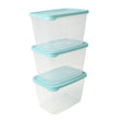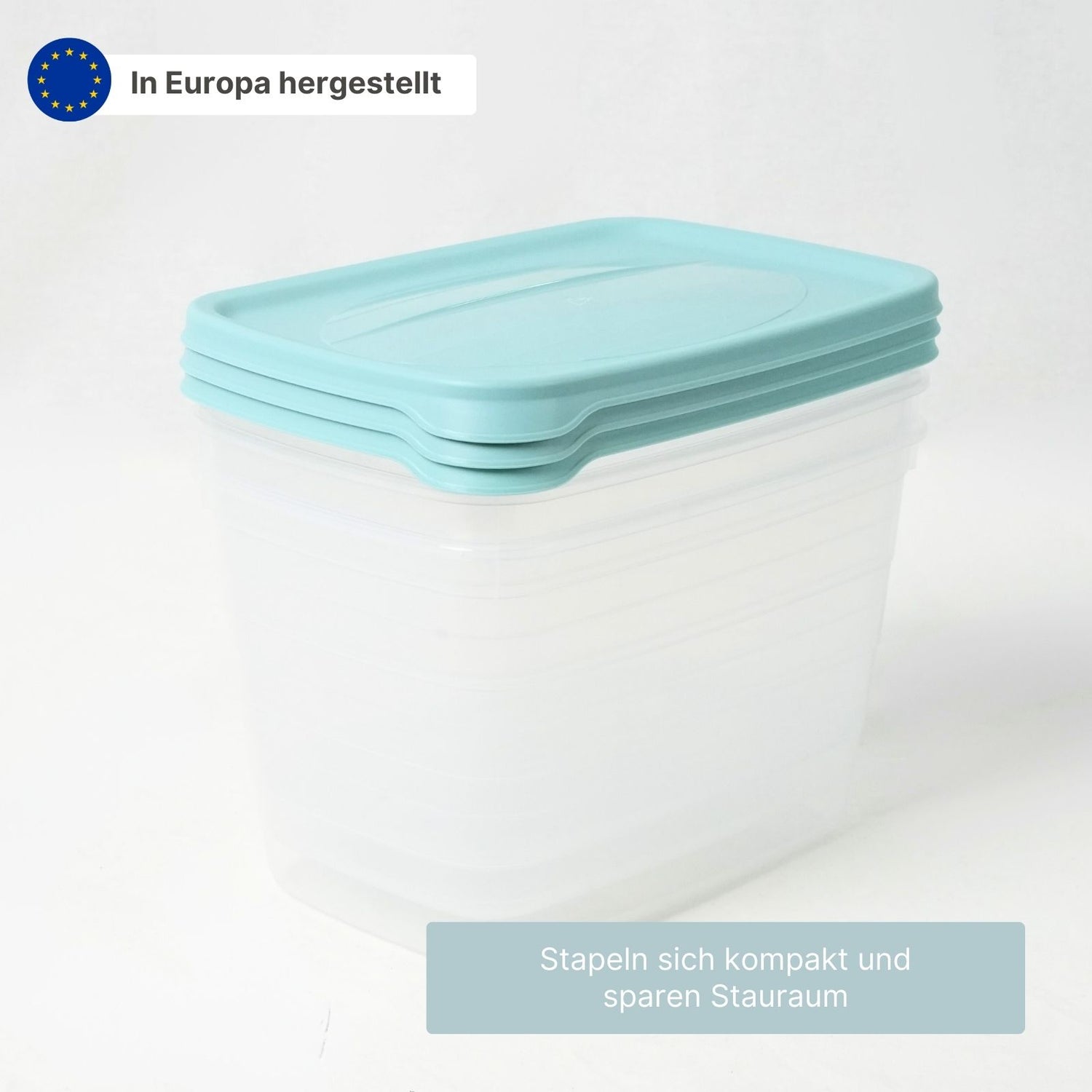 Einmal vorkochen und dann entspannt geniessen – mit diesem 3er-Set Frischhaltedosen bleibt alles übersichtlich, frisch und griffbereit. Ob übrig gebliebenes Essen, Meal-Prep oder kleine Snacks für unterwegs, diese praktischen Vorratsdosen sorgen für Ordnung wie Übersicht in der Küche und bieten eine sichere Aufbewahrung für verschiedenste Lebensmittel. Das Set besteht aus 3 rechteckigen Dosen mit jeweils 2200ml Fassungsvermögen und passendem Deckel. Dank der einheitlichen Grösse lassen sie sich platzsparend ineinander stapeln, wenn sie nicht gebraucht werden. Hergestellt in Europa, erfüllen diese Vorratsdosen hohe Qualitätsstandards. Das BPA-freie Polypropylen ist lebensmittelecht, langlebig und formstabil. Die Gefrierdosen sind vielseitig nutzbar: Sie sind gefriergeeignet bis -25°C, wodurch sich Speisen problemlos auf Vorrat lagern lassen. In der Mikrowelle können die Lebensmittel direkt erhitzt werden – der Deckel sollte jedoch zuvor entfernt werden. Zudem sind die Aufbewahrungsdosen spülmaschinengeeignet und lassen sich so leicht reinigen. Die transparenten Behälter ermöglichen eine schnelle Sicht auf den Inhalt, sodass sich jederzeit erkennen lässt, was noch vorrätig ist. Der Deckel in Türkis schliesst sicher, schützt Lebensmittel und hält sie länger frisch. Mit einer Grösse von 20cm x 13.5cm x 13cm und einem Gewicht von nur 112g sind die Boxen leicht zu handhaben und finden in jeder Küche ihren Platz. Egal ob für die Aufbewahrung im Kühlschrank, das Einfrieren von Speisen oder das schnelle Erwärmen in der Mikrowelle – dieses praktische 3er-Dosen-Set erleichtert den Alltag, hält Lebensmittel frisch und sorgt für mehr Übersicht und Ordnung.