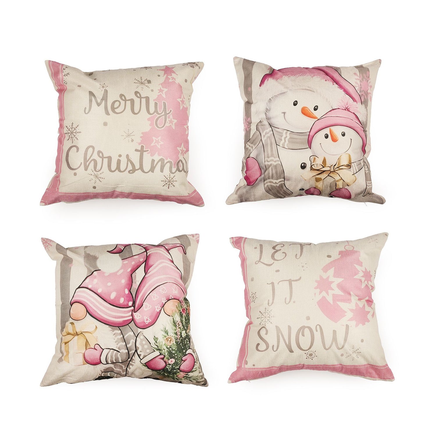 4er-Set Weihnachts-Kissenbezug Kissenhülle Dekokissen-Bezug Zier-Bezug