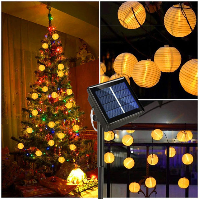 6.5m LED-Lichterkette Solar Lampion-Lichterkette Leucht-Girlande Weiss