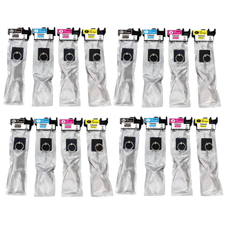 Bei diesem Angebot handelt es sich um ein hochwertiges Tintenpatronen-Set, welche jeweils mit einem Chip für die Füllstandsanzeige ausgestattet sind. Unsere Tintenpatronen werden aus hochwertigen Materialien hergestellt sowie mit erstklassiger Tinte befüllt, wodurch sie ein brillantes Druckergebnis garantieren. Jede Patrone durchläuft eine Reihe von Qualitätskontrollen, um die Einhaltung der EU-Norm sicherzustellen. Die Füllmengen der einzelnen Farben betragen: Black (70ml), Cyan (48ml), Yellow (48ml), Magenta (48ml). Die Patronen-Nr. der einzelnen Patronen lautet wie folgt: T9441, T9442, T9443, T9444. Im Set sind die Farben Black, Cyan, Yellow, Magenta enthalten. Jede einzelne Patrone wird gebrauchsfertig und original verpackt geliefert. Im Lieferumfang enthalten sind: 4x Black, 4x Cyan, 4x Yellow, 4x Magenta. Auspacken, einsetzen und günstig weiterdrucken. Die Tintenpatronen sind für folgende Druckermodelle geeignet: Epson WorkForce WF-C5215DW, Epson WorkForce Pro WF-C5210DW, Epson WorkForce Pro WF-C5290DW, Epson WorkForce Pro WF-C5290DW BAM, Epson WorkForce Pro WF-C5710DWF, Epson WorkForce Pro WF-C5790DWF.
