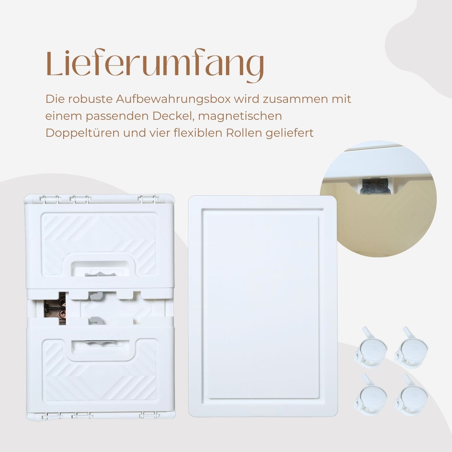 Sag dem Alltagschaos Lebewohl – mit dieser praktischen Faltbox für Vorräte und Haushaltszubehör! Der kompakte Vorratsschrank mit den Massen 55cm x 35cm x 37cm bietet genau das richtige Format für eine aufgeräumte Aufbewahrung – von Reinigungsmitteln über Vorratsgläser bis hin zu Bastelsachen oder Babyzubehör. Ob in der Küche, im Badezimmer, im Kinderzimmer oder im Abstellraum: Dieser mobile Vorratsschrank bringt Struktur in jeden Raum. Dank der vier leichtgängigen Rollen lässt sich der Haushaltsschrank flexibel verschieben – dorthin, wo du ihn gerade brauchst. Die transparenten, magnetisch schliessenden Doppeltüren in Braun geben dir den Überblick über den Inhalt, ohne dass du den Schrank öffnen musst. Gleichzeitig schützt das geschlossene Gehäuse zuverlässig vor Staub. Gefertigt aus robustem PET- und PP-Kunststoff, überzeugt dieser mobile Schrank durch Stabilität, Langlebigkeit und eine pflegeleichte Oberfläche. Bei Nichtgebrauch kannst du ihn einfach zusammenfalten und platzsparend verstauen. Dieses Modell dient als Basismodul und lässt sich mit der Erweiterung 55 (Artikelnummer 139262) flexibel erweitern – ganz ohne Werkzeug. So entsteht bei Bedarf ein individuelles Regalsystem ganz nach deinem Platzbedarf. Egal ob für Lebensmittel, Pflegeprodukte, Spielzeug oder Bastelmaterialien – dieser Haushaltsschrank ersetzt ein klassisches Regal und bietet eine clevere, bewegliche Stauraumlösung. Hinweis: Leichte Farbunterschiede zum Produktbild sind möglich.