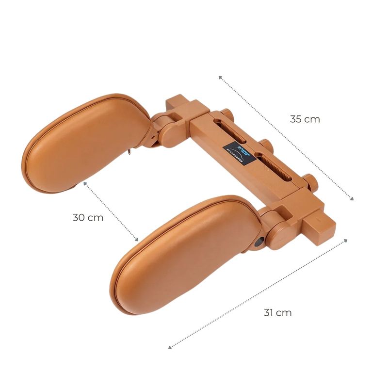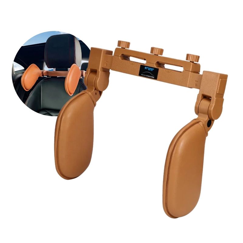 Erlebe ultimativen Komfort und optimale Unterstützung auf langen Autofahrten mit unserer verstellbaren Autositz-Kopfstütze. Entwickelt für Kinder und Erwachsene, bietet diese Kopfstütze mit beidseitiger Auflage eine optimale Unterstützung für Kopf, Schultern und Nacken. Die Kopfauflage wird mittels Schraubbefestigung an der Kopfstütze des Rücksitzes montiert und lässt sich stufenlos in einem Winkel von 180° nach unten oder oben klappen. So hast du stets die Wahl: Nutze eine, beide oder keine Lehne, ganz nach deinen Wünschen. Auch der Abstand zwischen den beiden Auflagen ist verstellbar zwischen 20cm und 30cm und ermöglicht somit eine individuelle Anpassung. Ob du eine aufrechte Sitzposition bevorzugst oder dich während langer Fahrten entspannen möchtest, diese Kopfstütze verhindert nicht nur das unangenehme Wegkippen des Kopfes, sie bietet dir auch die Flexibilität, die du benötigst. Die Nackenstütze aus hochwertigem Kunststoff ist mit einem PU-Lederbezug in Braun angenehm gepolstert. Mit einer Grösse von 35cm x 31cm ist sie kompatibel mit den meisten Autositzen und ein unverzichtbares Accessoire für jede Autofahrt. Achtung: die Kopfstütze darf nicht verwendet werden, wenn die Funktion von Airbags beeinträchtigt werden könnte! Gönn deinen Mitfahrern den Komfort unserer verstellbaren Autositz-Kopfstütze für entspannte Fahrten, egal wie weit die Reise geht!