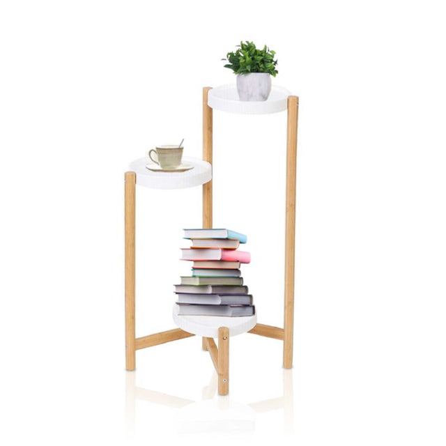 Präsentiere deine Pflanzen stilvoll mit unserem Blumenständer! Mit drei Ebenen in verschiedenen Höhen – 20cm, 60cm und 80cm – bietet er dir die perfekte Bühne für deine grünen Schätze. Unser Pflanzenregal überzeugt nicht nur mit seiner Funktionalität, sondern auch mit seinem stilvollen Design. Die Kombination aus Bambus und weiss lackiertem Metall verleiht ihm eine natürliche Eleganz. Mit einer Ständerbreite von 45cm passt er perfekt in deine Wohnräume. Die grosszügigen Ablageflächen mit einem Durchmesser von 22cm bieten ausreichend Platz für deine Pflanzen. Der erhöhte Rand dient dabei nicht nur als Ablaufschutz, sondern sorgt auch für eine sichere Präsentation. Ganz gleich, ob du ihn für deine Pflanzen, als Beistelltisch oder zur Dekoration nutzt – dieser Pflanzenständer fügt sich nahtlos in deine Einrichtung ein. Sein unkomplizierter Aufbau macht Freude und bringt die Natur direkt zu dir nach Hause. Zudem ist er leicht zu reinigen, damit du immer eine gepflegte Umgebung für deine Pflanzen hast. Setze mit dieser Pflanzentreppe stilvolle Akzente in deiner Wohnung oder auf dem überdachten Balkon. Mit seiner robusten Bauweise steht er stabil und sicher, während er gleichzeitig eine traumhafte Kulisse für deine Pflanzen schafft. Tauche ein in die Welt der botanischen Ästhetik und hol dir mit unserem Blumenständer ein Stück Natur in dein Zuhause.