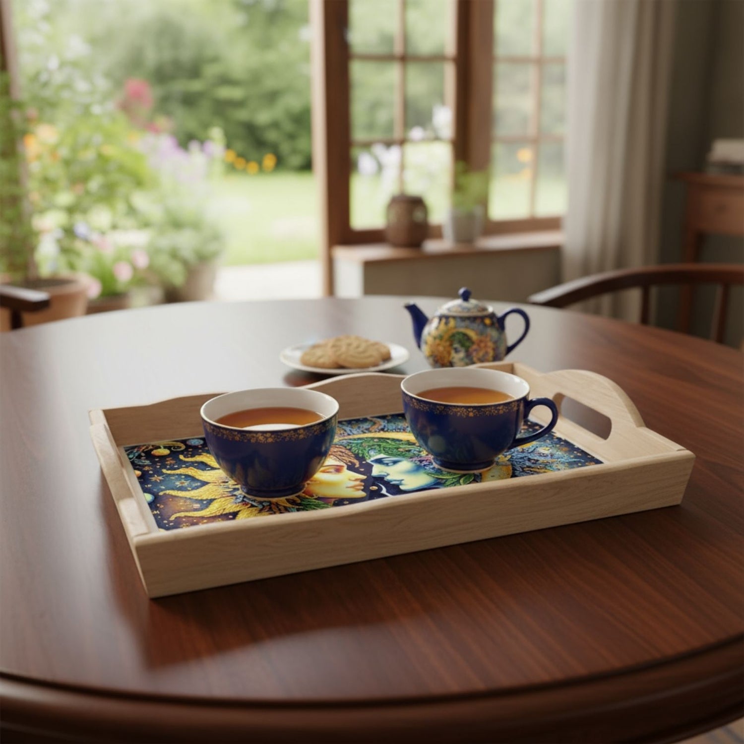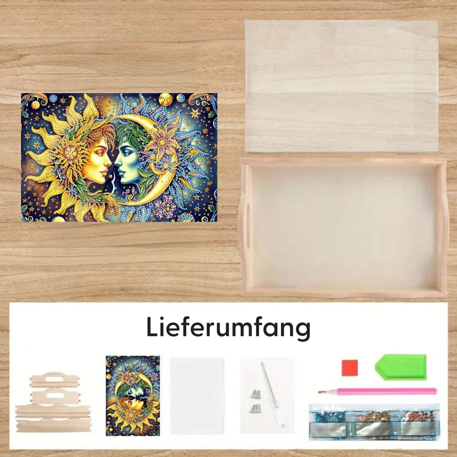 Diamond Painting Serviertablett Sonne Mond Holztablett Servierplatte