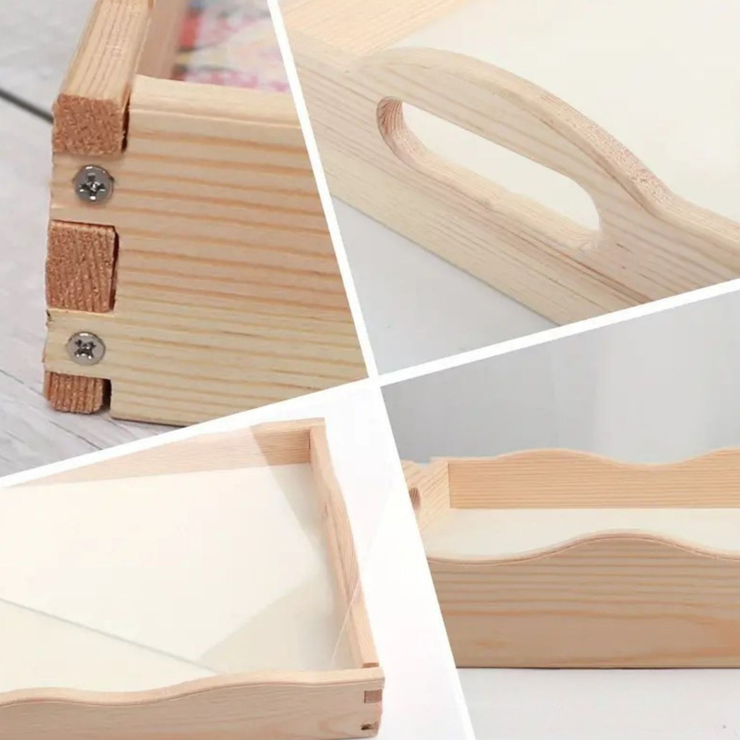 Du liebst kreative Projekte und hast Freude daran, Schönes stilvoll herzurichten und zu präsentieren? Dieses DIY Diamond Painting Serviertablett verbindet Bastelspass mit liebevoller Gestaltung – und wird dabei selbst zum dekorativen Highlight. Das harmonische Motiv mit Sonne und Mond steht für Ausgeglichenheit und die Schönheit der Gegensätze. Du klebst die glitzernden Kunststoffsteine einfach nach dem Malen-nach-Zahlen-Prinzip auf die markierten Flächen – ein kreativer Prozess, der entspannend wirkt und dich den Alltag für einen Moment vergessen lässt. Anschliessend setzt du das Tablett aus Buchenholz zusammen und schützt dein fertiges Werk mit der beiliegenden Acrylplatte. So bleibt dein Kunstwerk lange erhalten und wird gleichzeitig nutzbar. Mit einer Grösse von 30cm x 20cm x 6.5cm bietet das Tablett Platz für kleine Snacks, Tassen oder Gläser. So kannst du deine Kreationen stilvoll servieren und schaffst einen besonderen Moment des Genusses. Du kannst das Motivtablett auch als dekoratives Element auf einem Sideboard oder Fensterbrett in Szene setzen. Es eignet sich sowohl als kreatives DIY-Geschenk für Bastelfans als auch – fertig gestaltet – für alle, die Freude an liebevoll gemachten Dingen haben.