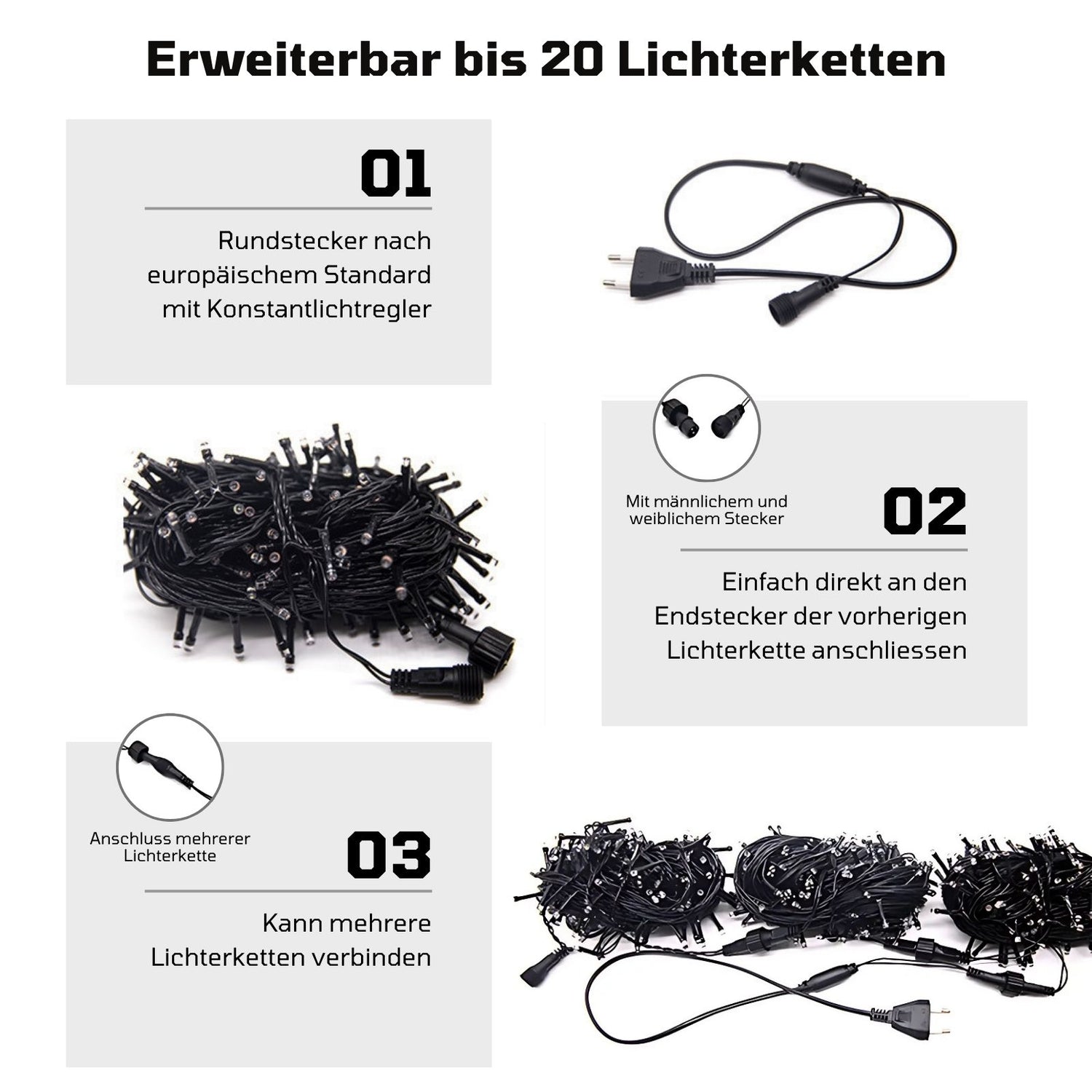 Erweiterbare LED-Lichterkette 9.7m mit Steckverbindung Verlängerung