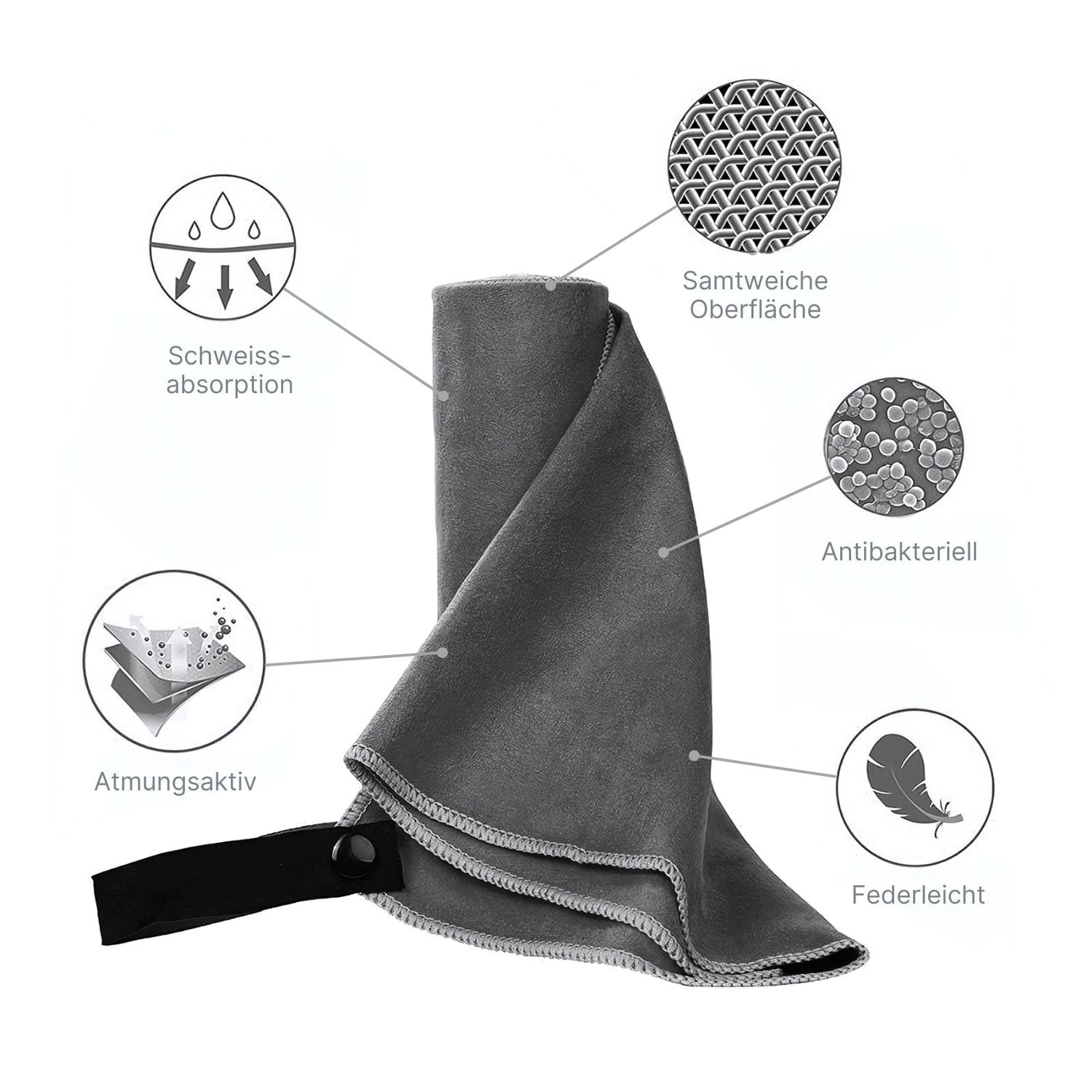 Entdecke das ideale Fitnesshandtuch für dein Training – das Sporthandtuch aus Mikrofaser. Mit einer Grösse von 152cm x 76cm bietet es dir den optimalen Komfort beim Sport. Das Mikrofasertuch ist äusserst saugfähig und absorbiert den Schweiss sofort. Es kann bis zu 450ml Feuchtigkeit aufnehmen, trocknet schnell, ist atmungsaktiv und angenehm weich auf der Haut. Mit einem Gewicht von nur 250g ist es leicht, aber dennoch strapazierfähig. Das antibakterielle Material hält das Handtuch frisch und hygienisch, was besonders wichtig ist, wenn du im Fitnessstudio trainierst oder intensive Workouts absolvierst. Du kannst das Sporttuch im mitgelieferten Transportbeutel mühelos mitnehmen, ideal für unterwegs. Dieses Handtuch ist vielseitig einsetzbar – ob für Fitness, Strand oder Badezimmer, es ist ein unverzichtbares Accessoire für viele Sport- und Freizeitaktivitäten.