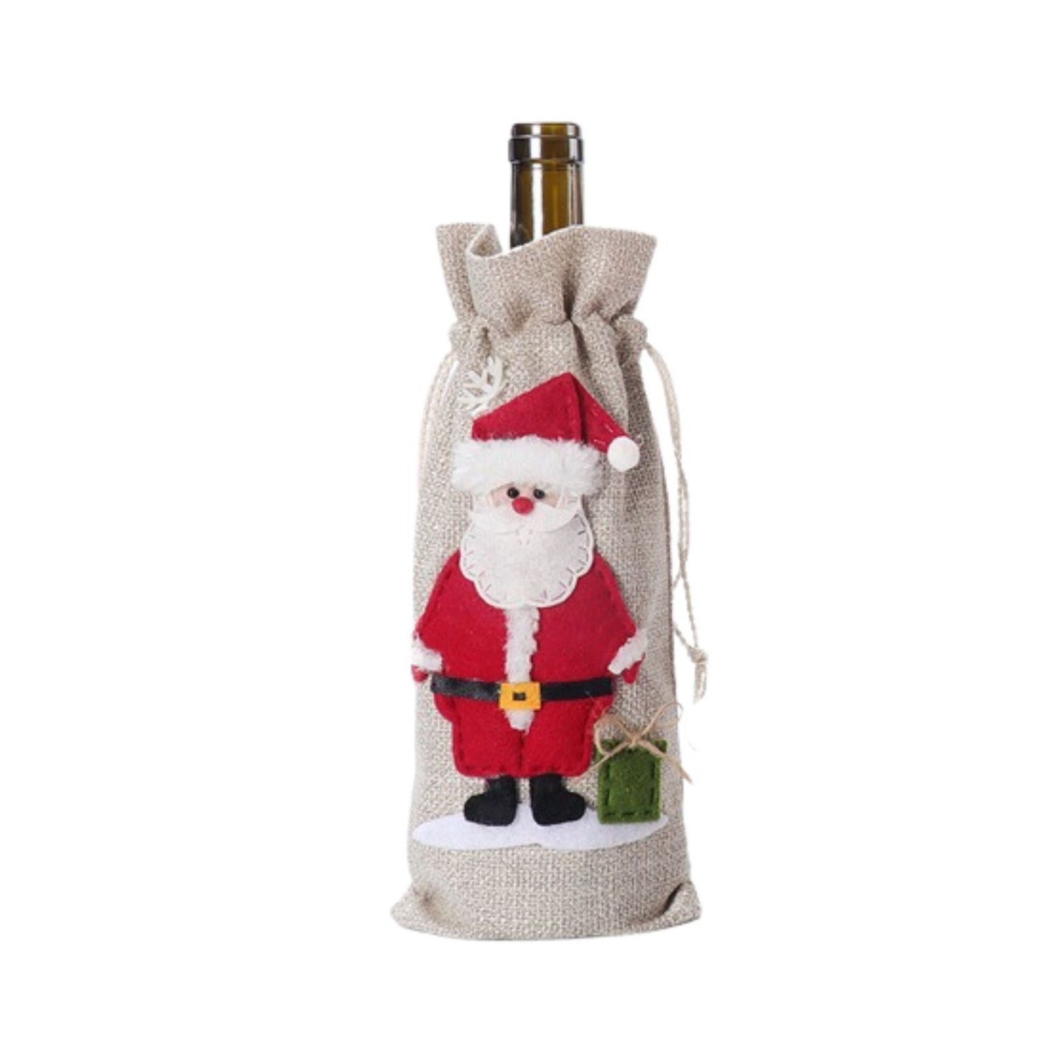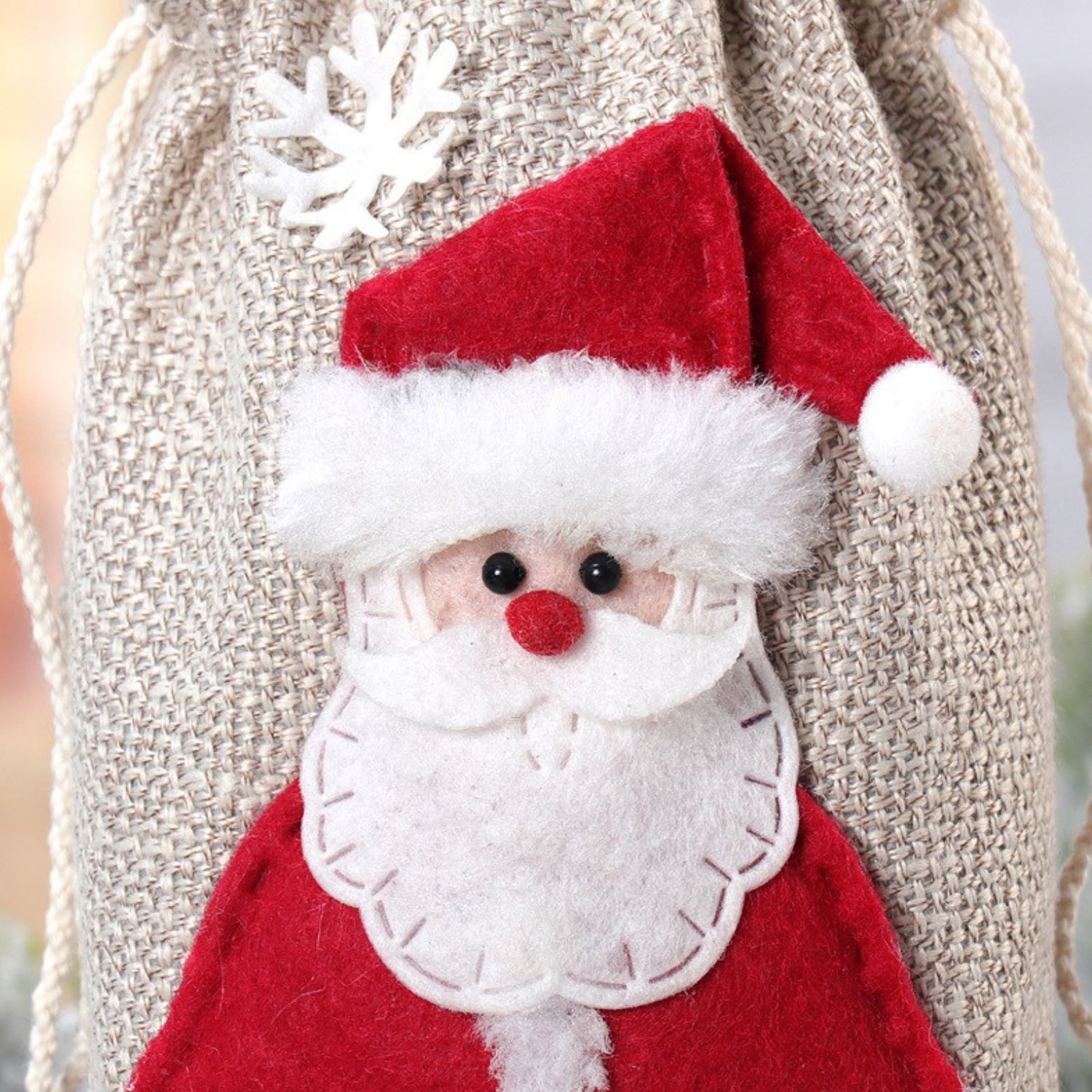 Es ist Weihnachtszeit – Kerzenschein flackert, Tannenduft liegt in der Luft, und ein liebevoll verpacktes Geschenk zaubert sofort ein Lächeln ins Gesicht. Gerade in dieser besonderen Jahreszeit sind es die kleinen Details, die Wärme und Freude schenken. Diese festliche Flaschentasche verwandelt jede Wein- oder Sektflasche in ein stimmungsvolles Präsent und bringt weihnachtlichen Glanz auf deinen Tisch oder unter den Baum. Gefertigt aus Leinen und Samt, verbindet der Weinflaschenbeutel natürliche Struktur mit liebevollen Details. In Beige mit roten, weissen, schwarzen und grünen Akzenten gestaltet, fügt sich die Tasche harmonisch in jede weihnachtliche Dekoration ein. Der auf der Hülle angebrachte Weihnachtsmann mit Geschenk und Schneeflocke sorgt für einen charmanten 3D-Effekt und zieht mit seinem niedlichen Aussehen alle Blicke auf sich. Die Hülle misst im flach ausgebreiteten Zustand 14cm x 28.5cm (Masse Weihnachtsmann: 10cm x 17cm) und wiegt ca. 45g. Sie ist leicht, dennoch formstabil und eignet sich für Flaschen bis zu 1000ml mit einem Durchmesser von ca. 9.5cm und einer Höhe von bis zu 36cm – ideal für Wein-, Champagner- oder Sektflaschen. Dank der seitlichen Bändel lässt sich der obere Teil der Tasche bequem zuziehen, sodass die Flasche sicher verpackt ist und gleichzeitig dekorativ präsentiert wird. So können auch Kleinigkeiten wie Nüsse, Schokolade und Mandarinen in den Beutel gepackt werden. Ob als origineller Geschenkbeutel für kleine Aufmerksamkeiten, als stilvolle Verpackung für Weinflaschen oder als liebevolles Dekoelement in der Weihnachtszeit – diese Flaschenhülle setzt warme, saisonale Akzente und bringt festliche Stimmung in dein Zuhause und verbreitet dort den Weihnachtszauber.