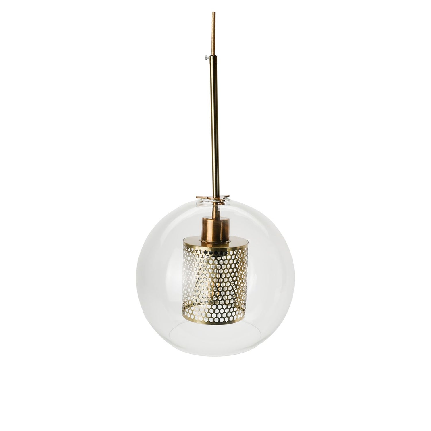 Wenn abends sanftes Licht den Raum erfüllt, entsteht eine Stimmung, die sofort zur Ruhe kommen lässt und den Alltag vergessen macht. Diese moderne Glas-Deckenleuchte mit industriell-elegantem Charakter verbindet stilvolles Design mit warmer Ausstrahlung. Das transparente Glas des kugelförmigen Lampenschirms lässt das Licht gleichmässig strahlen und erzeugt eine behagliche Atmosphäre – ideal für entspannte und ruhevolle Abende. Die Pendelleuchte kombiniert das goldige Metall aus galvanisiertem Eisen und den Glas-Lampenschirm zu einer eleganten Hängelampe, die sich harmonisch in deinen Indoor-Bereich einfügt, z.B. in Schlafzimmer, Küche, Esszimmer, Café, Restaurant oder Loft. Das mitgelieferte LED-Leuchtmittel (4W, 220V) mit 2700K Farbtemperatur sorgt für angenehm warmweisses Licht, ist dimmbar und überzeugt mit einer Lebensdauer von bis zu 30000h. Ausgestattet mit einer E27-Fassung kannst du auch andere LEDs oder Glühlampen einsetzen und das Licht nach deinen Vorstellungen variieren. Mit einer Schirmgrösse von 25cm x 25cm x 23cm und einem Baldachin von 9.5cm x 9.5cm x 2cm eignet sich die Deckenlampe optimal für Flächen von etwa 10-15m². Mit einer Kabellänge von 200cm, die sich bei der Montage individuell kürzen lässt, eignet sich die Hängeleuchte zudem für unterschiedliche Raumhöhen. Das Anbringen der Leuchte gelingt unkompliziert mit dem im Set enthaltenen Befestigungsmaterial. Ob über dem Esstisch, als dezente Beleuchtung im Schlafzimmer oder als stilvolles Detail in Bar oder Restaurant – diese Pendelleuchte schafft ein wohliges Ambiente.