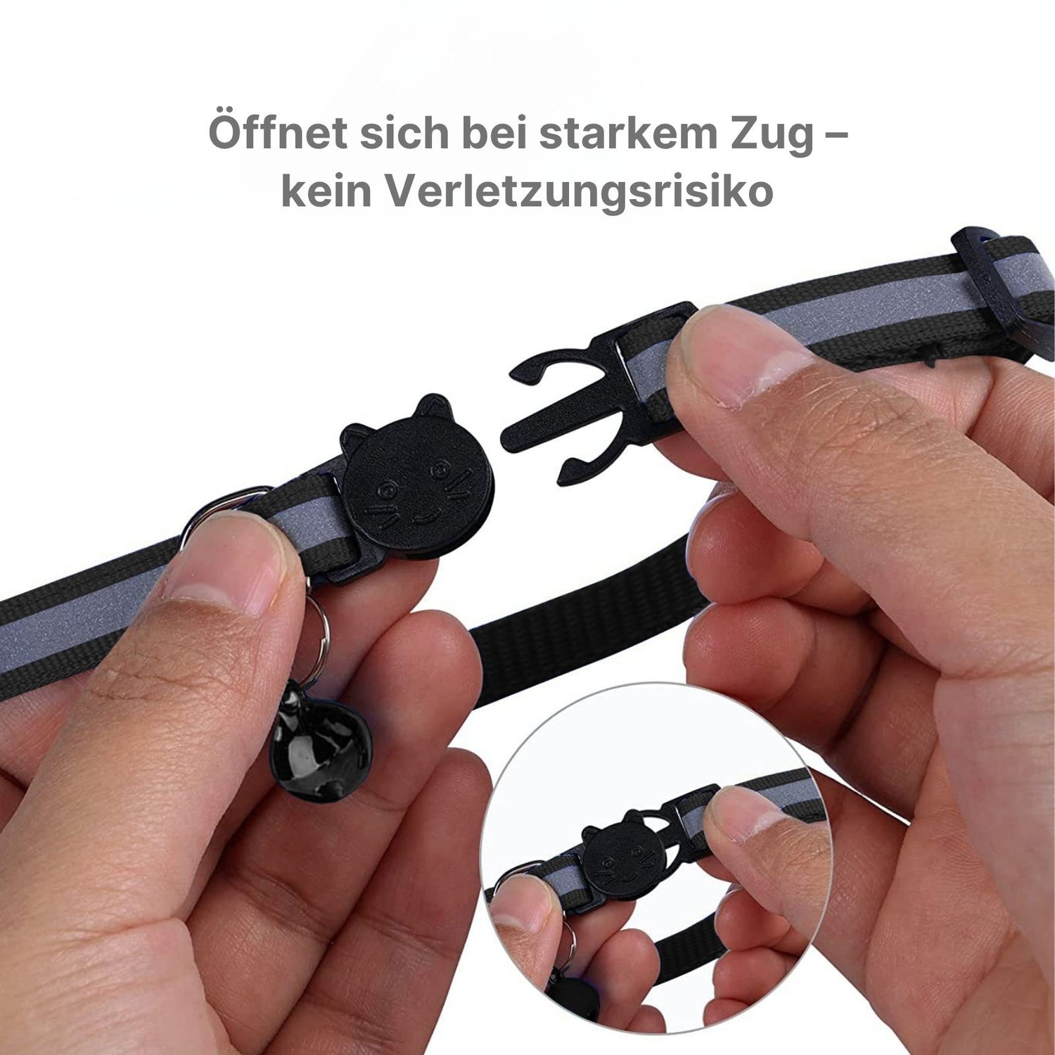 Manchmal genügt ein kurzer Moment der Unachtsamkeit – die Tür steht einen Spalt offen, dein Haustier schlüpft hinaus, und du weisst nicht, wo es ist. Mit diesem Halsband mit AirTag-Halterung kannst du deine Katze, deinen Welpen oder kleinen Hund jederzeit lokalisieren, verlierst keine Zeit mit Suchen und musst dir keine Sorgen mehr darüber machen, wo sich deine Fellnase gerade aufhält – für die Sicherheit deines Lieblings und für dein gutes Gefühl. Das Hundehalsband in Schwarz integriert eine passgenaue Silikonhülle für den Apple AirTag GPS-Tracker (nicht im Lieferumfang enthalten), damit du deinen Vierbeiner jederzeit über die „Wo ist?“-App orten kannst. Die Hülle ist wasserfest, stossfest und weich, damit der AirTag gut geschützt ist und dein Tier sich trotzdem wohlfühlt. Das Katzenhalsband ist aus geruchlosem, fellschonendem und atmungsaktivem Nylonmaterial. Mit einem Gewicht von nur 8g bleibt das Welpenhalsband angenehm leicht. Die Länge lässt sich flexibel zwischen 17cm und 28cm anpassen, die Breite beträgt lediglich 1cm – passend für Katzen, kleine Hunde wie Chihuahuas oder junge Welpen. Für zusätzliche Sicherheit sorgt der clevere Sicherheits-Clip-Verschluss: Bei starkem Ziehen öffnet sich das Halsband automatisch und verhindert so Verletzungen oder Strangulation. Das liebevolle Katzendesign mit runden Ohren verleiht dem Verschluss eine spielerische Note. Besonders praktisch: Der reflektierende Streifen des Halsbands erhöht die Sichtbarkeit deines Vierbeiners bei Dunkelheit. Die mitgelieferte, abnehmbare Glocke sorgt zusätzlich für leichtere auditive Ortung deines Haustiers. Ein robuster D-Ring aus Chrome ermöglicht das Anbringen eines Adressanhängers oder weiteren Zubehörs (nicht im Lieferumfang enthalten). Verliere deinen pelzigen Freund mit diesem Halsband mit AirTag-Halterung nicht mehr aus den Augen!