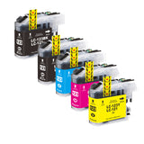 Bei diesem Angebot handelt es sich um ein hochwertiges Tintenpatronen-Set, welche jeweils mit einem Chip für die Füllstandsanzeige ausgestattet sind. Unsere Tintenpatronen werden aus hochwertigen Materialien hergestellt sowie mit erstklassiger Tinte befüllt, wodurch sie ein brillantes Druckergebnis garantieren. Jede Patrone durchläuft eine Reihe von Qualitätskontrollen, um die Einhaltung der EU-Norm sicherzustellen. Die Füllmengen der einzelnen Farben betragen: Cyan (10ml), Magenta (10ml), Yellow (10ml), Black (20ml). Die Patronen-Nr. der einzelnen Patronen lautet wie folgt: LC-123C, LC-123Y, LC-123M, LC-123BK. Im Set sind die Farben Cyan, Magenta, Yellow, Black enthalten. Jede einzelne Patrone wird gebrauchsfertig und original verpackt geliefert. Im Lieferumfang enthalten sind: 1x Cyan, 1x Magenta, 1x Yellow, 2x Black. Auspacken, einsetzen und günstig weiterdrucken. Die Tintenpatronen sind für folgendes Druckermodell geeignet: Brother DCP-J152W.