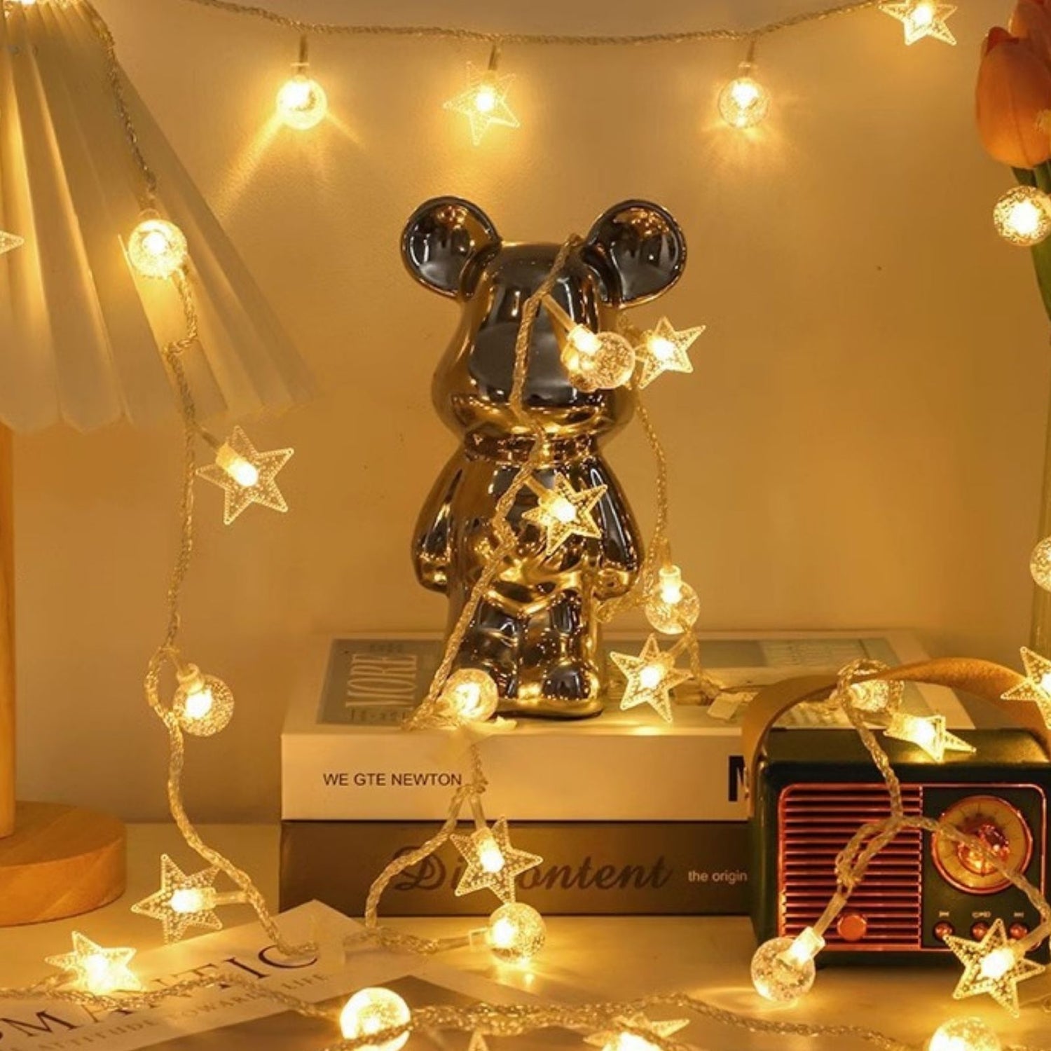 LED Kugel- und Sternenlichterkette 3m Dekolichterkette Kugeln Sterne