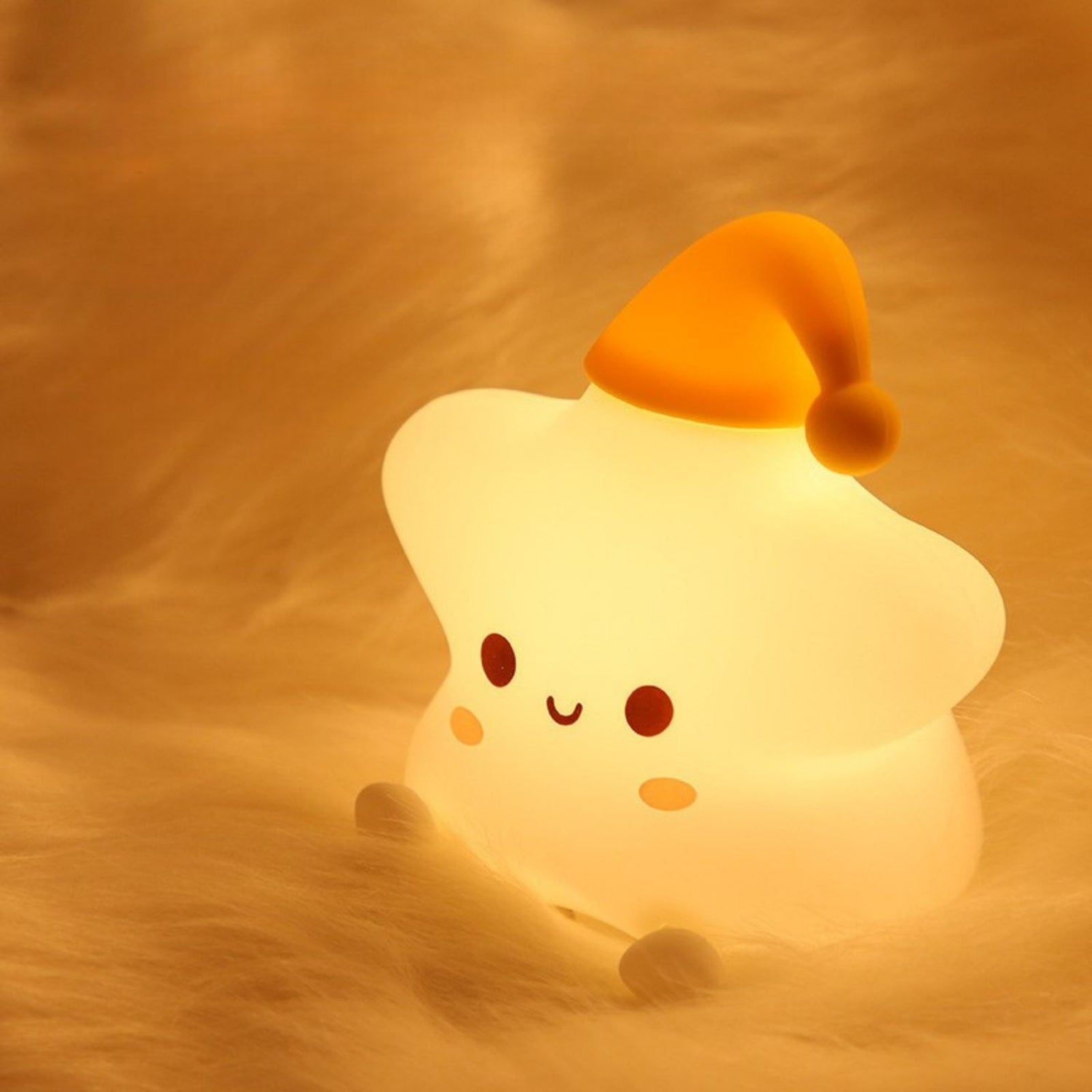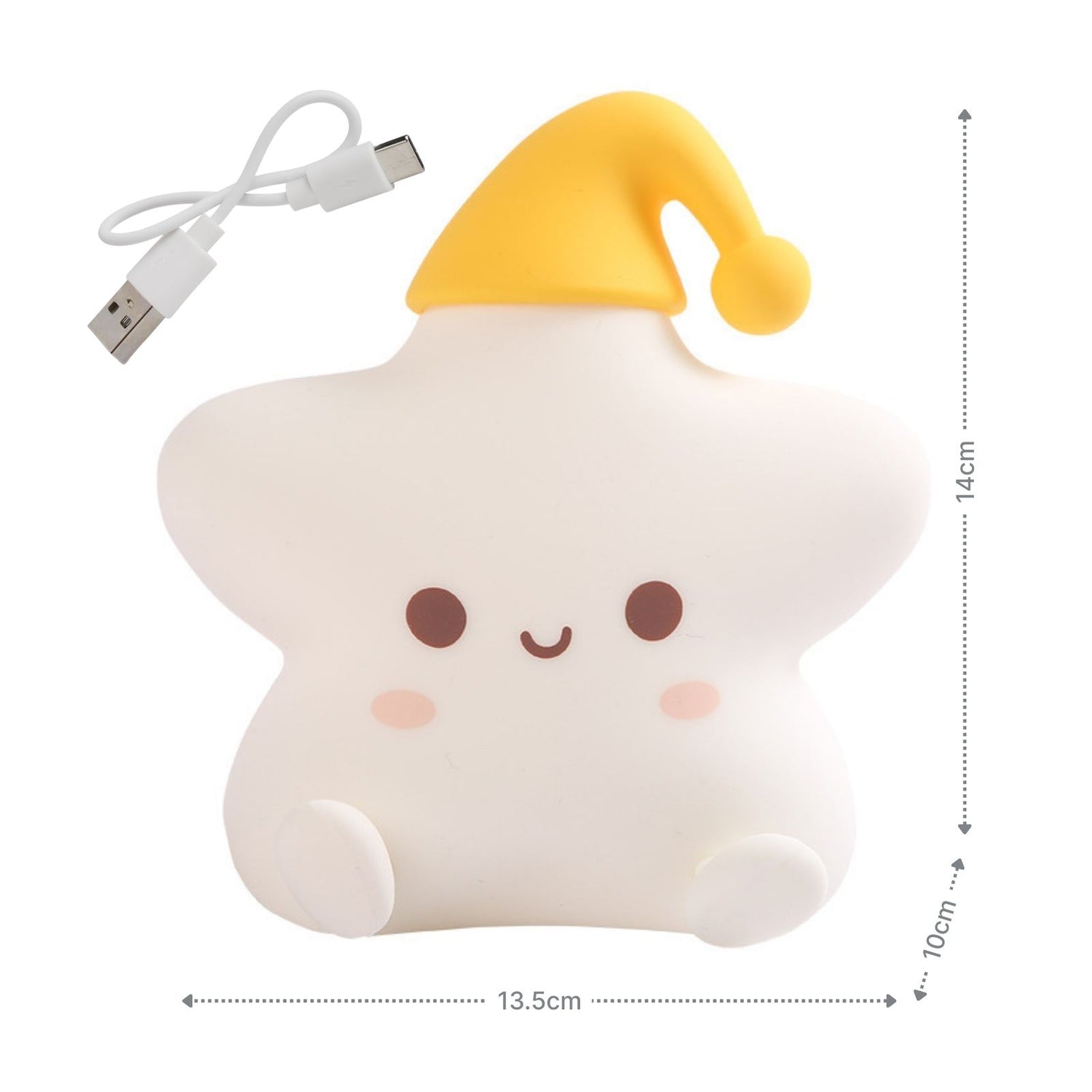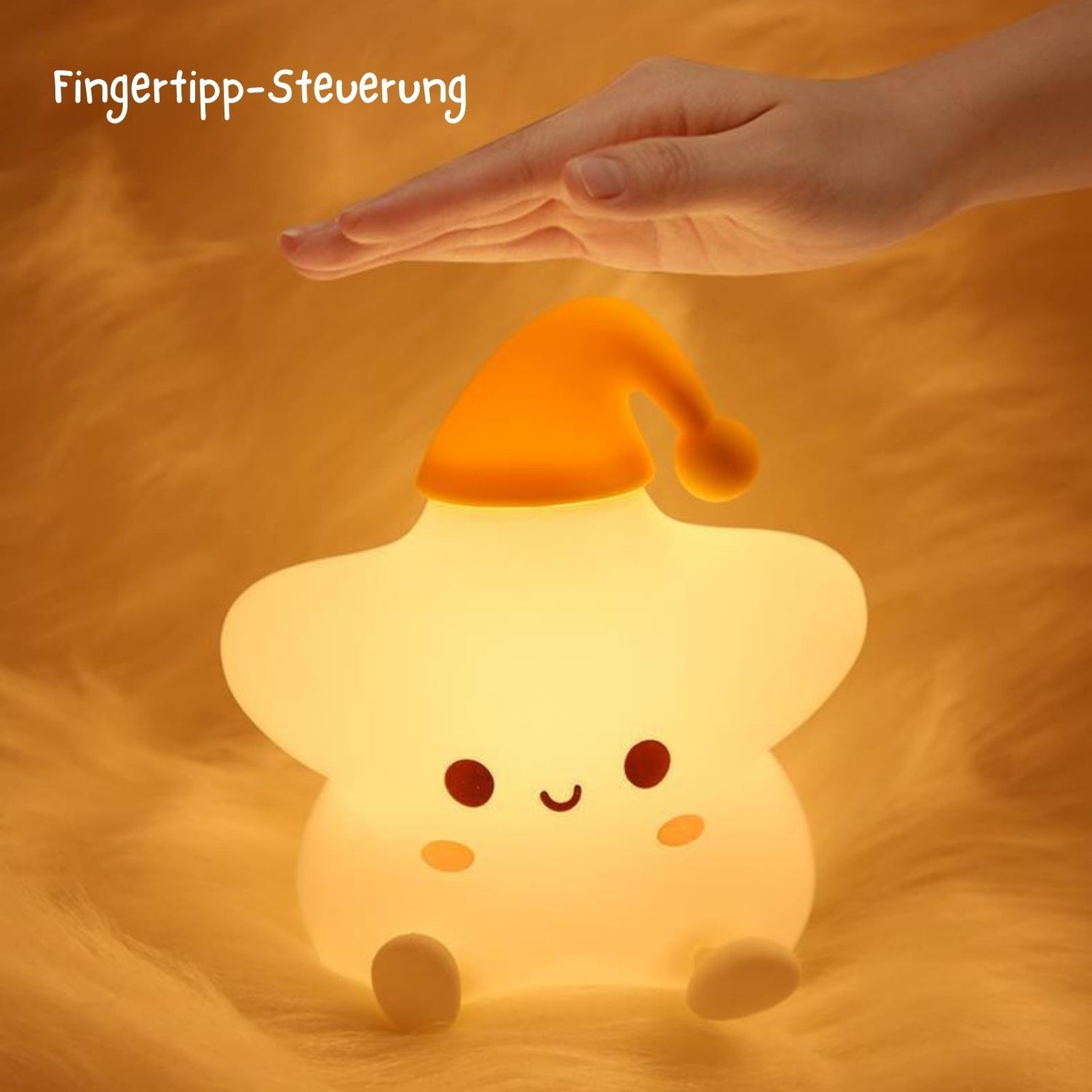 Wenn es abends ruhig wird, spielt Licht oft eine entscheidende Rolle – ob im Kinderzimmer, beim Einschlafen, als sanftes Orientierungslicht in der Nacht oder als stimmungsvolle Tischleuchte im Wohnzimmer. Dieses LED-Stern-Nachtlicht bringt nicht nur Gemütlichkeit in jedes Zimmer, sondern sorgt auch für ein angenehmes Gefühl von Geborgenheit. Mit seinem herzigen Design passt es genauso gut auf den Nachttisch von Erwachsenen wie ins Kinderzimmer. Mit kompakten Massen von 13.5cm x 10cm x 14cm lässt es sich leicht aufstellen oder mitnehmen. Das Besondere an dieser Tischleuchte ist die intuitive Bedienung per Fingertipp: Beim ersten Tippen leuchtet das Nachtlicht in sanftem warmweissen Licht, bei jedem weiteren wechselt es zwischen den Farben Rot, Grün und Blau, bevor es mit erneutem Tippen in einen konstanten, fliessenden Farb-Wechselmodus von Pink, Violett, Orange, Rot, Blau, Gelb und Grün übergeht. Der Farbwechsel wirkt beruhigend und schafft eine entspannte Stimmung. Alle Leucht-Einstellungen bieten eine sanfte Lichtquelle ohne zu blenden. Der integrierte Akku mit 1200mAh Kapazität sorgt für eine lange Laufzeit von bis zu 8 Stunden im Warmlichtmodus bzw. 10 Stunden im Farb-Wechselmodus und ist bequem über USB-C wiederaufladbar und während des Ladens nutzbar. Ein USB-C-auf-USB-A-Ladekabel ist im Lieferumfang enthalten Die Ladezeit beträgt ca. 2.5 Stunden. Das Nachtlicht besteht aus weichem Silikon sowie stabilem ABS – robust, sicher und angenehm in der Haptik. Ein einfacher Knopf auf der Unterseite ermöglicht dir die Wahl zwischen An oder Aus. Ob als Einschlafhilfe, stimmungsvolles Dekolicht oder liebevoller Begleiter durch die Nacht – dieser Stern mit Schlafmütze bringt eine wohnliche Atmosphäre in jeden Raum.
