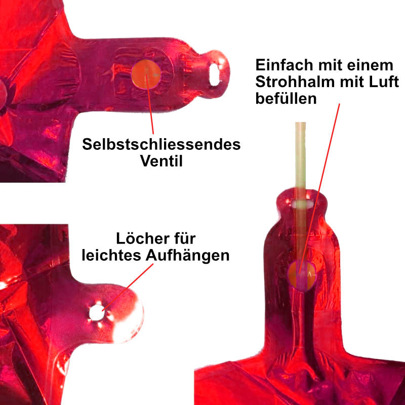 Feiere deine besonderen Anlässe in glänzendem Stil mit unserem roten Folienballon mit der Zahl 8! Mit imposanten 81 cm Grösse zieht er alle Blicke auf sich und verleiht deiner Party einen Hauch von Eleganz. Ob Geburtstagsparty, Jubiläumsfeier, Hochzeit, Silvester oder sogar Themenparks - dieser Ballon ist der perfekte Begleiter für alle festlichen Momente. Unser Folienballon kann ganz einfach mit Helium oder Luft gefüllt werden, was dir maximale Flexibilität bietet. Hergestellt aus hochwertigem Nylon, sorgt dieser Luftballon dafür, dass du dich nicht mit lästigem Zuknoten herumärgern musst - er verschliesst sich selbst! Egal ob drinnen oder draussen, dieser Folienballon ist die ideale Partydekoration für jeden Bereich. Seine glänzende rote Farbe wird garantiert zum Highlight auf jeder Feier. Mache deine Feier unvergesslich mit unserem roten Folienballon mit der Zahl 8. Hol ihn dir jetzt und sorge für den Wow-Effekt, den du dir wünschst!