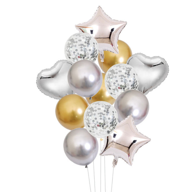 - 13-teiliges Party Ballon Set in Golden und Silbrig