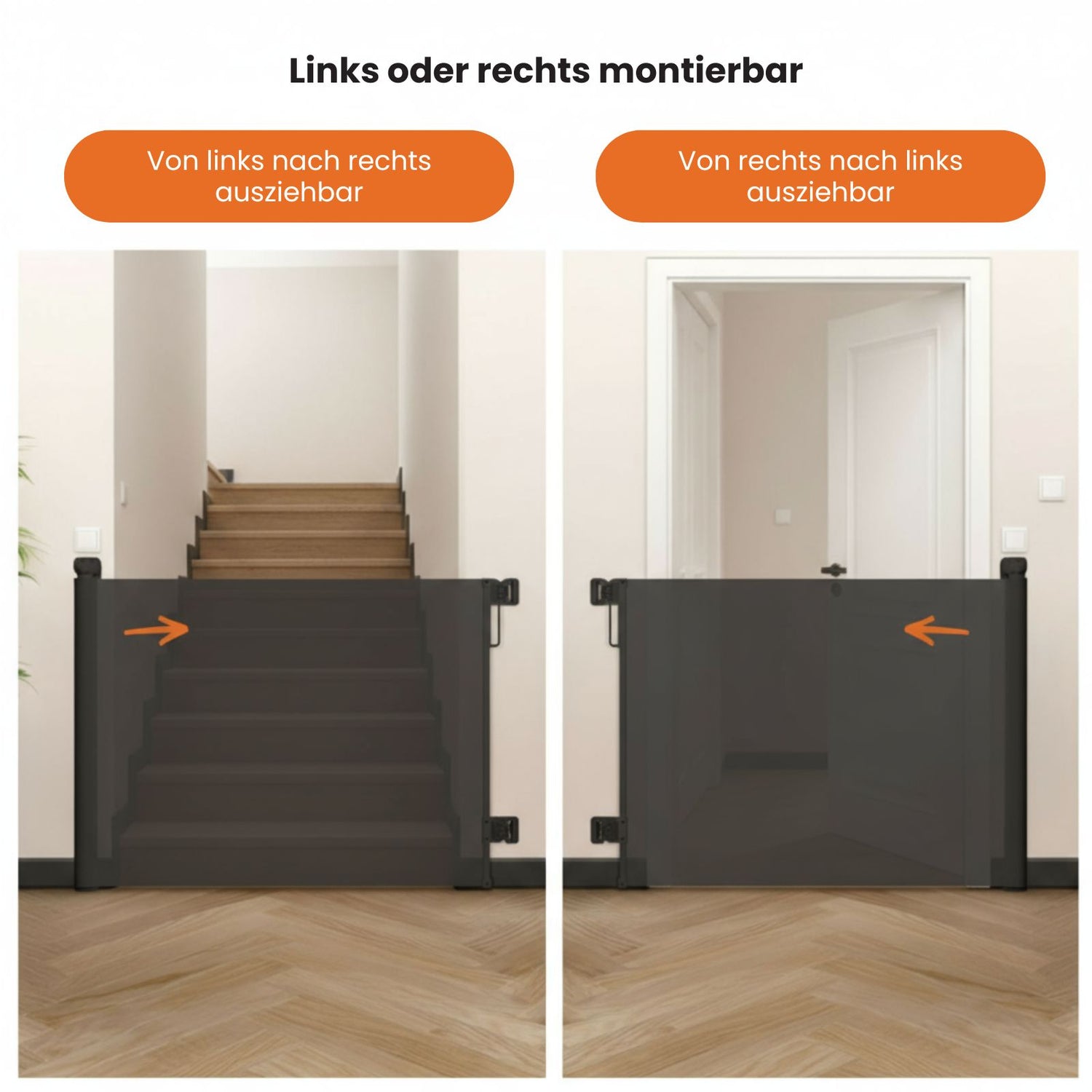 Dein Kind krabbelt neugierig durchs Haus, dein Haustier erkundet jedes Zimmer – doch manche Bereiche sind einfach nicht sicher. Ob steile Treppen, die Küche oder empfindliche Möbel – jetzt gibt es eine praktische Lösung: Dieses ausziehbare Baby- und Haustier-Sicherheitsgitter bietet zuverlässigen Schutz für deinen Alltag. Das Gitter überzeugt mit seiner variablen Länge von 20cm - 180cm und einer Höhe von 86cm, ideal für Türen, Treppen oder breite Durchgänge. Dank der unauffälligen, schwarzen Optik fügt sich das Gitter harmonisch in jedes Zuhause ein, ohne den Raum optisch zu stören. Das weiche Netzmaterial sorgt für Sicherheit ohne scharfe Kanten, ideal für Kinderhände und empfindliche Haustierschnauzen. Die individuell einstellbare Abtrennung und die justierbare Höhe der unteren Halterung machen das Schutzgitter besonders anpassungsfähig – ob für schmale Türen oder breite Durchgänge. Es kann an harten Oberflächen festgeschraubt werden. Das nötige Befestigungsmaterial (Schrauben, Dübel) ist natürlich dabei. Egal, ob du es dauerhaft befestigen oder temporär anbringen willst, diese Flexibilität macht das Sicherheitsgitter zu einem unverzichtbaren Helfer. Besonders praktisch: Es bietet Schutz, ohne deinen Alltag einzuschränken – es lässt sich problemlos öffnen und schliessen. Sichere jetzt dein Zuhause und sorge dafür, dass Kinder (ab 6 Monaten) und Haustiere unbesorgt spielen können, während gefährliche Bereiche zuverlässig abgesperrt bleiben. Dieses Gitter kombiniert Sicherheit, Funktionalität und ein dezentes Design – für mehr Entspannung im Familienalltag.