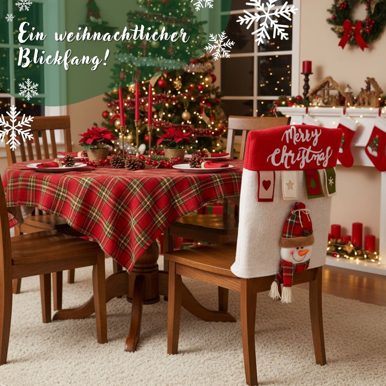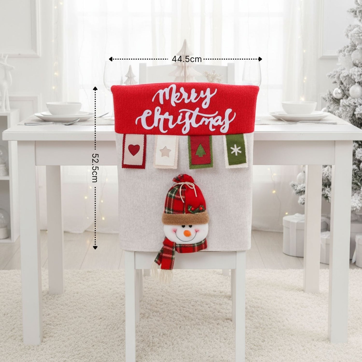 Wenn draussen Schneeflocken tanzen und du dein Zuhause festlich schmückst, runden dekorierte Stühle den Esstisch perfekt ab. Oft fehlt es bei Familienessen oder Weihnachtsfeiern an einer stimmungsvollen Dekoration, die Wärme und Harmonie ausstrahlt. Diese rechteckige Stuhlhusse mit Schneemannmotiv sorgt dafür, dass jeder Platz zum Teil eines liebevoll geschmückten Gesamtbildes wird. Der weisse Stuhlüberzug besteht aus Stoff mit PP-Baumwollanteil und zeigt auf der Rückseite einen fröhlichen Schneemann mit Schal und Mütze – ein detailreiches Motiv, das sofort weihnachtliche Stimmung verbreitet. Mit Massen von 44.5cm x 6cm x 52.5cm ist die Husse für Stuhllehnen mit einer Breite von bis zu 42.5cm und einer Tiefe von bis zu 5cm geeignet. Auch bei Lehnen mit grösserer Stärke kann sie passen, wenn diese entsprechend schmaler sind. Du kannst die Stuhlhusse im Handumdrehen überziehen und nach den Feiertagen genauso schnell wieder abnehmen. Das Material ist robust und pflegeleicht, sodass du den weihnachtlichen Stuhlbezug problemlos Jahr für Jahr verwenden kannst – ob beim festlichen Familienessen, beim gemütlichen Adventskaffee oder als Blickfang bei Weihnachtsfeiern.