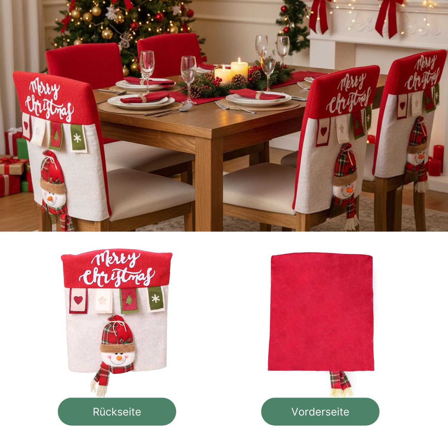 Stuhlhusse mit Schneemann Weihnachts-Stuhldeko Stuhlbezug Stuhlüberzug