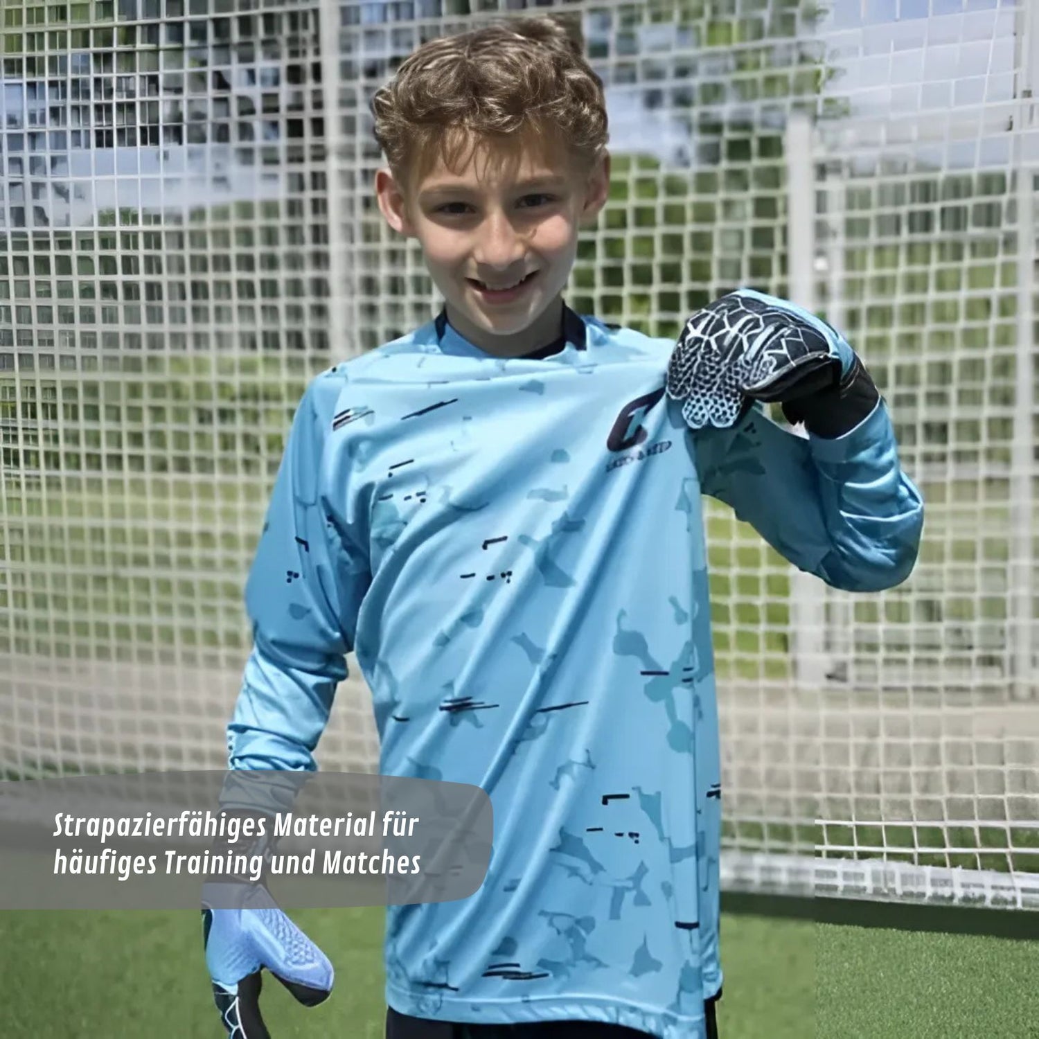 Wenn dein Kind voller Energie im Tor steht, dabei springt und Bälle abwehrt, braucht es ein Torwarttrikot, das mithält. Nur so bleibt der Spass am Spiel ungetrübt. Das Blue Camou Protection Torwarttrikot in Grösse 152 ist kindgerecht, funktional und komfortabel. Durch die doppelte Polsterung an beiden Armen ist dein Kind bestens geschützt für alle Paraden und Duelle. Gleichzeitig bleibt das Trikot durch seinen sportlichen Schnitt flexibel – für uneingeschränkte Bewegungsfreiheit beim Fangen, Fausten oder Abrollen. Das Fussballtrikot aus Polyester ist atmungsaktiv und trocknet schnell, sodass es nicht klamm am Körper klebt. Zudem ist das Material strapazierfähig und hält den Anforderungen auf dem Platz problemlos stand. Dadurch ist es bestens geeignet für lange Trainingstage und spannende Matches. Pflegehinweis: Schmutz und Schweiss können die Materialeigenschaften des Trikots beeinträchtigen. Wasche das Torwarttrikot regelmässig gemäss den Pflegehinweisen auf der Innenseite des Shirts. Verwende dabei kein heisses Wasser (max. 30°C) und keine aggressiven Reinigungsmittel. Das Trikot ist nicht für die maschinelle Trocknung geeignet; lasse es an der Luft trocknen und vermeide direkte Sonneneinstrahlung sowie das Trocknen auf Heizkörpern.