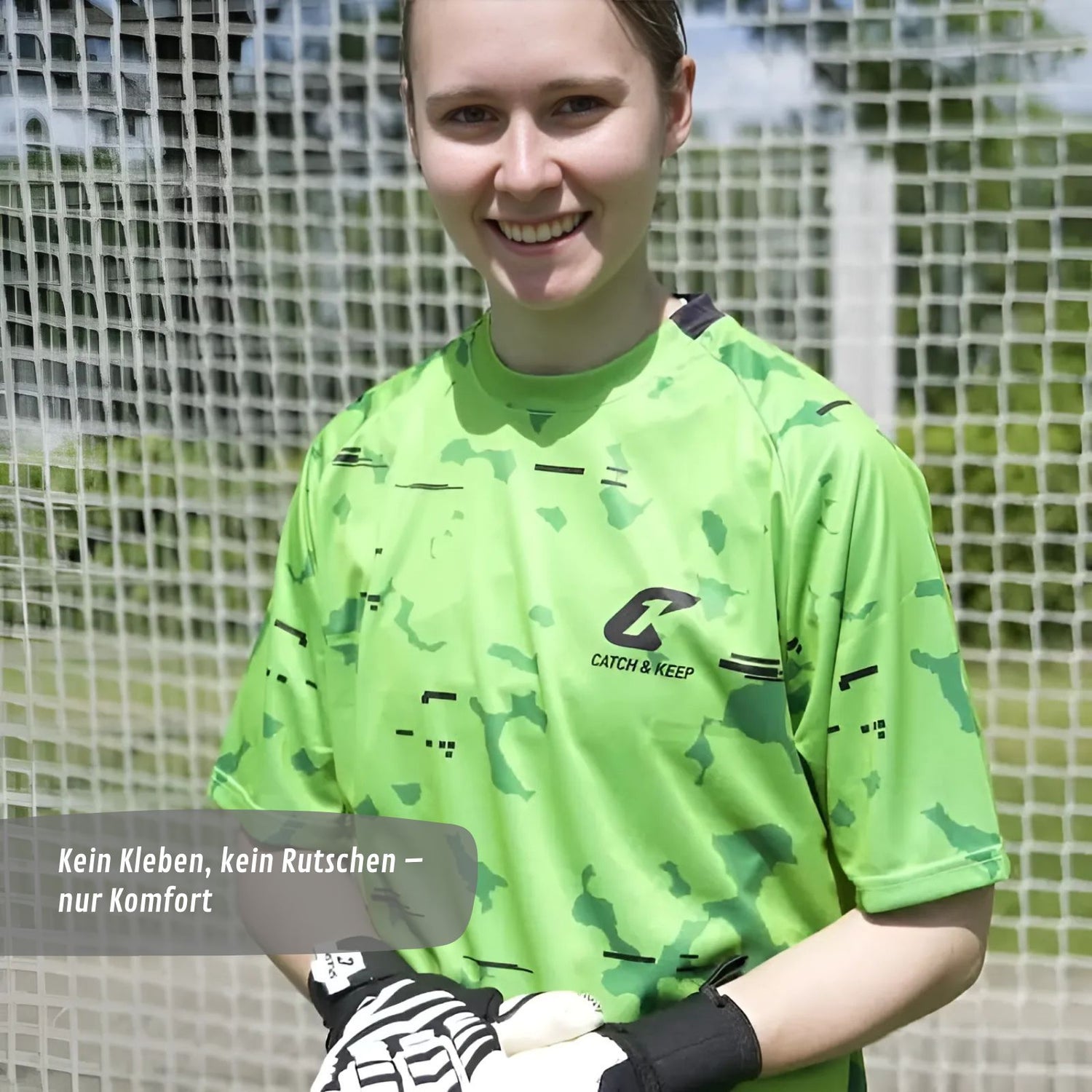 Im Tor brauchst du volle Bewegungsfreiheit – ein Trikot, das einschränkt oder unangenehm klebt, kann schnell den Spielfluss stören. Gerade als Torwart ist es entscheidend, dass dein Trikot sitzt, atmungsaktiv ist und jede Bewegung mitmacht. Das Green Camou Kurzarm-Torwarttrikot in Grün, Grösse S, verbindet sportliches Design mit funktionalem Material und hohem Tragekomfort. So kannst du dich ganz auf das konzentrieren, was zählt: den Ball im Blick und den Fokus auf dem Spiel. Der sportliche Schnitt sorgt dafür, dass Beweglichkeit und Flexibilität nicht eingeschränkt werden – ganz gleich, ob beim Absprung, Abrollen oder schnellen Reagieren. Hergestellt aus Polyester, bietet das Trikot ein angenehmes Tragegefühl. Der Stoff lässt Luft zirkulieren, unterstützt die Temperaturregulierung und trägt sich auch bei längerem Einsatz angenehm leicht. Das Fussballshirt ist zudem schnell trocknend – für weniger klebriges Gefühl nach dem Spiel oder in der Pause. So bist du im Tor jederzeit voll einsatzbereit – mit echter Bewegungsfreiheit und spürbarem Komfort. Pflegehinweis: Schmutz und Schweiss können die Materialeigenschaften des Trikots beeinträchtigen. Wasche das Torwarttrikot regelmässig gemäss den Pflegehinweisen auf der Innenseite des Shirts. Verwende dabei kein heisses Wasser (max. 30°C) und keine aggressiven Reinigungsmittel. Das Trikot ist nicht für die maschinelle Trocknung geeignet; lasse es an der Luft trocknen und vermeide direkte Sonneneinstrahlung sowie das Trocknen auf Heizkörpern.