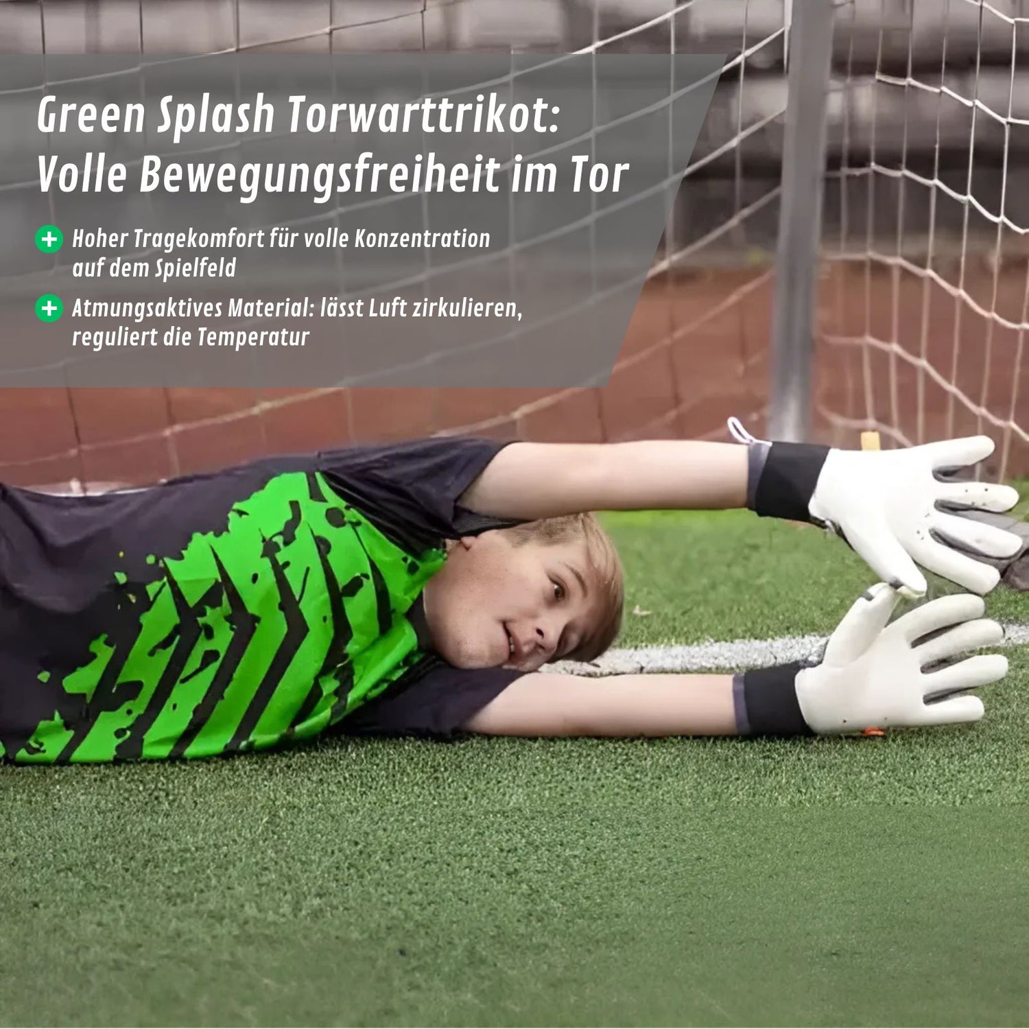 Im Tor braucht dein Kind volle Bewegungsfreiheit, denn ein Trikot, das einschränkt oder unangenehm klebt, kann schnell den Spielspass verderben. Gerade für junge Torhüter ist es entscheidend, dass das Trikot sitzt, atmungsaktiv ist und jede Bewegung mitmacht. Das Green Splash Kurzarm-Torwarttrikot in Grün, Grösse 152, verbindet ein sportliches Design mit funktionalem Material und hohem Tragekomfort. So kann dein Kind sich ganz auf das konzentrieren, was zählt: den Ball im Blick und die Konzentration auf dem Platz. Der sportliche Schnitt sorgt dafür, dass Beweglichkeit und Flexibilität nicht eingeschränkt werden – ganz gleich, ob beim Absprung, Abrollen oder schnellen Reagieren. Dank des atmungsaktiven Materials bleibt die Haut angenehm trocken. Der Stoff lässt Luft zirkulieren, unterstützt die Temperaturregulierung und trägt sich auch bei längerem Einsatz angenehm leicht. Das Fussballshirt ist zudem schnell trocknend. Das bedeutet weniger klebriges Gefühl nach dem Spiel und mehr Komfort in der Pause oder auf dem Heimweg. So kann dein Kind im Tor alles geben – mit voller Bewegungsfreiheit und echtem Tragekomfort. Pflegehinweis: Schmutz und Schweiss können die Materialeigenschaften des Trikots beeinträchtigen. Wasche das Fussballtrikot regelmässig gemäss den Pflegehinweisen auf dem Etikett. Verwende dabei kein heisses Wasser (max. 30°C) und keine aggressiven Reinigungsmittel. Das Trikot ist nicht für die maschinelle Trocknung geeignet; lasse es an der Luft trocknen und vermeide direkte Sonneneinstrahlung sowie das Trocknen auf Heizkörpern.