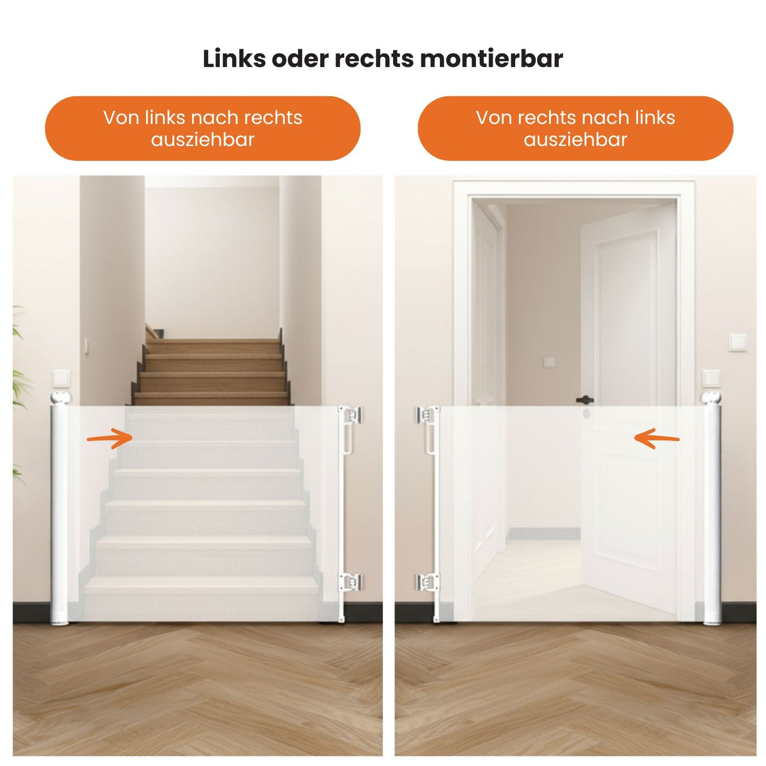 Dein Kind krabbelt neugierig durchs Haus, dein Haustier erkundet jedes Zimmer – doch manche Bereiche sind einfach nicht sicher. Ob steile Treppen, die Küche oder empfindliche Möbel – jetzt gibt es eine praktische Lösung: Dieses ausziehbare Baby- und Haustier-Sicherheitsgitter bietet zuverlässigen Schutz für deinen Alltag. Das Gitter überzeugt mit seiner variablen Länge von 20cm - 180cm und einer Höhe von 86cm, ideal für Türen, Treppen oder breite Durchgänge. Dank der unauffälligen, weissen Optik fügt sich das Gitter harmonisch in jedes Zuhause ein, ohne den Raum optisch zu stören. Das weiche Netzmaterial sorgt für Sicherheit ohne scharfe Kanten, ideal für Kinderhände und empfindliche Haustierschnauzen. Die individuell einstellbare Abtrennung und die justierbare Höhe der unteren Halterung machen das Schutzgitter besonders anpassungsfähig – ob für schmale Türen oder breite Durchgänge. Es kann an harten Oberflächen festgeschraubt werden. Das nötige Befestigungsmaterial (Schrauben, Dübel) ist natürlich dabei. Egal, ob du es dauerhaft befestigen oder temporär anbringen willst, diese Flexibilität macht das Sicherheitsgitter zu einem unverzichtbaren Helfer. Besonders praktisch: Es bietet Schutz, ohne deinen Alltag einzuschränken – es lässt sich problemlos öffnen und schliessen. Sichere jetzt dein Zuhause und sorge dafür, dass Kinder (ab 6 Monaten) und Haustiere unbesorgt spielen können, während gefährliche Bereiche zuverlässig abgesperrt bleiben. Dieses Gitter kombiniert Sicherheit, Funktionalität und ein dezentes Design – für mehr Entspannung im Familienalltag.