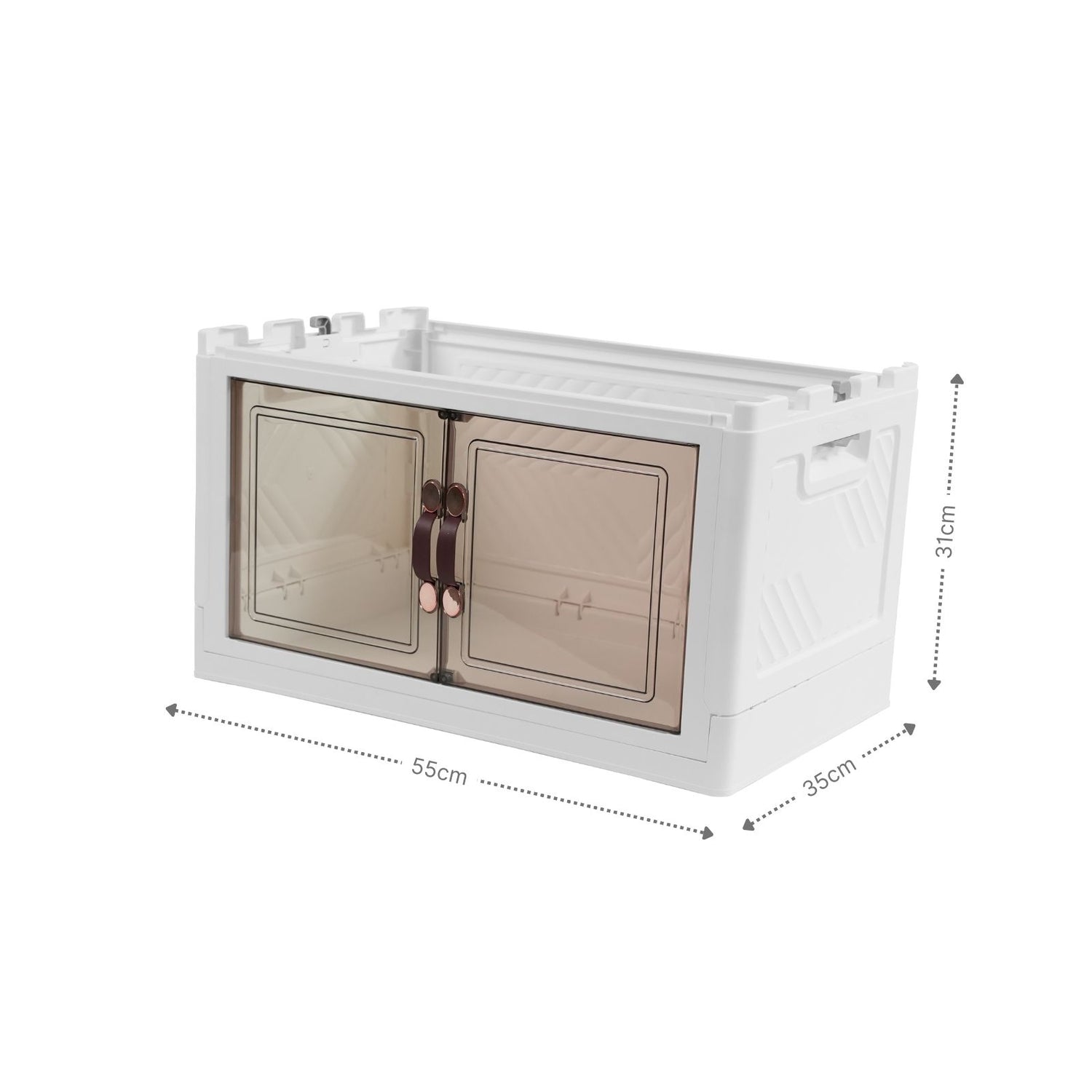 Du brauchst mehr Platz im Haushalt? Dieses Erweiterungsmodul schafft flexibel zusätzlichen Stauraum und passt exakt zum Basismodul 55 (Artikelnummer 139261). Mit Massen von 55cm x 35cm x 31cm lässt sich das Modul einfach auf das Basismodul aufsetzen – ohne Werkzeug. Der Deckel des unteren Moduls dient dabei als Abschluss für die Erweiterung. So entsteht im Handumdrehen ein stabiles, stapelbares Schranksystem, das ein klassisches Regal ersetzen kann. Ob Vorräte, Haushaltsartikel, Spielzeug oder Pflegeprodukte – der Haushaltsschrank wächst mit deinem Bedarf. Die transparenten Doppeltüren in Braun mit Magnetverschluss bieten einen schnellen Überblick über den Inhalt und schützen gleichzeitig zuverlässig vor Staub. Dank der hochwertigen Materialien aus PET- und PP-Kunststoff ist das Erweiterungsmodul robust, pflegeleicht und langlebig. Wird es nicht benötigt, lässt es sich platzsparend zusammenklappen und verstauen. Ob in der Küche, im Abstellraum oder Kinderzimmer – das stapelbare Regalsystem bietet dir eine praktische und ordentliche Lösung, wenn strukturierter Stauraum gefragt ist. Hinweis: Leichte Farbabweichungen zum Produktbild sind möglich.