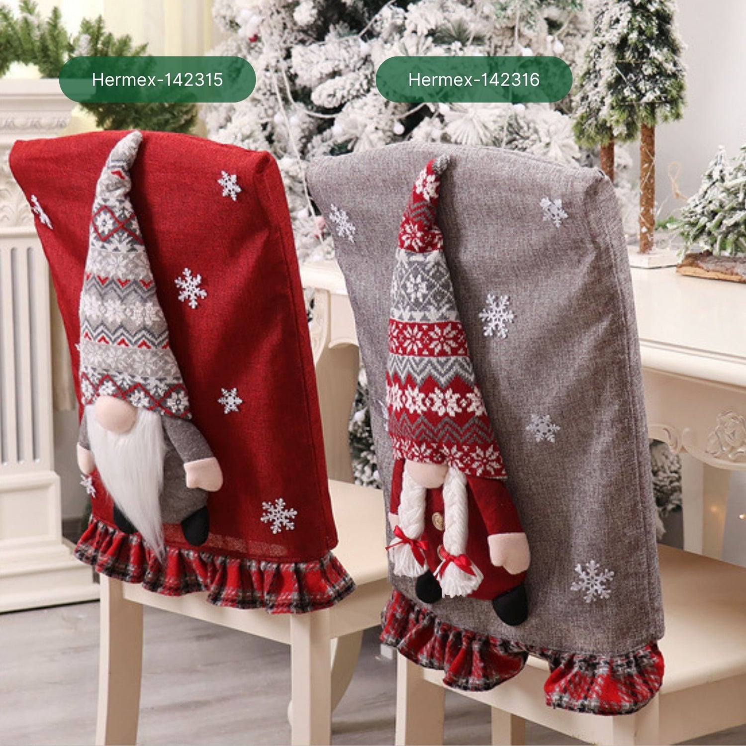 Wenn draussen Schneeflocken tanzen und du dein Zuhause festlich schmückst, runden dekorierte Stühle den Esstisch perfekt ab. Oft fehlt es bei Familienessen oder Weihnachtsfeiern an einer stimmungsvollen Dekoration, die Wärme und Harmonie ausstrahlt. Diese rechteckige Stuhlhusse mit Wichtelmotiv sorgt dafür, dass jeder Platz am Tisch zum Teil eines liebevoll geschmückten Gesamtbildes wird. Der rote Stuhlüberzug besteht aus Leinen, PP-Baumwolle, Strickstoff und Vlies und zeigt auf der Rückseite eine grosse Wichtelfrau mit zwei Zöpfen und langer Mütze – ein detailreiches Motiv, das sofort weihnachtliche Stimmung verbreitet. Mit Massen von 44.5cm x 6cm x 58cm ist die Husse für Stuhllehnen mit einer Breite von bis zu 42.5cm und einer Tiefe von bis zu 5cm geeignet. Auch bei Lehnen mit grösserer Stärke kann sie passen, wenn diese entsprechend schmaler sind. Du kannst die Stuhldeko im Handumdrehen überziehen und nach den Feiertagen genauso schnell wieder abnehmen. Das Material ist robust und pflegeleicht, sodass du den weihnachtlichen Stuhlbezug problemlos Jahr für Jahr verwenden kannst – ob beim festlichen Familienessen, beim gemütlichen Adventskaffee oder als Blickfang bei Weihnachtsfeiern.