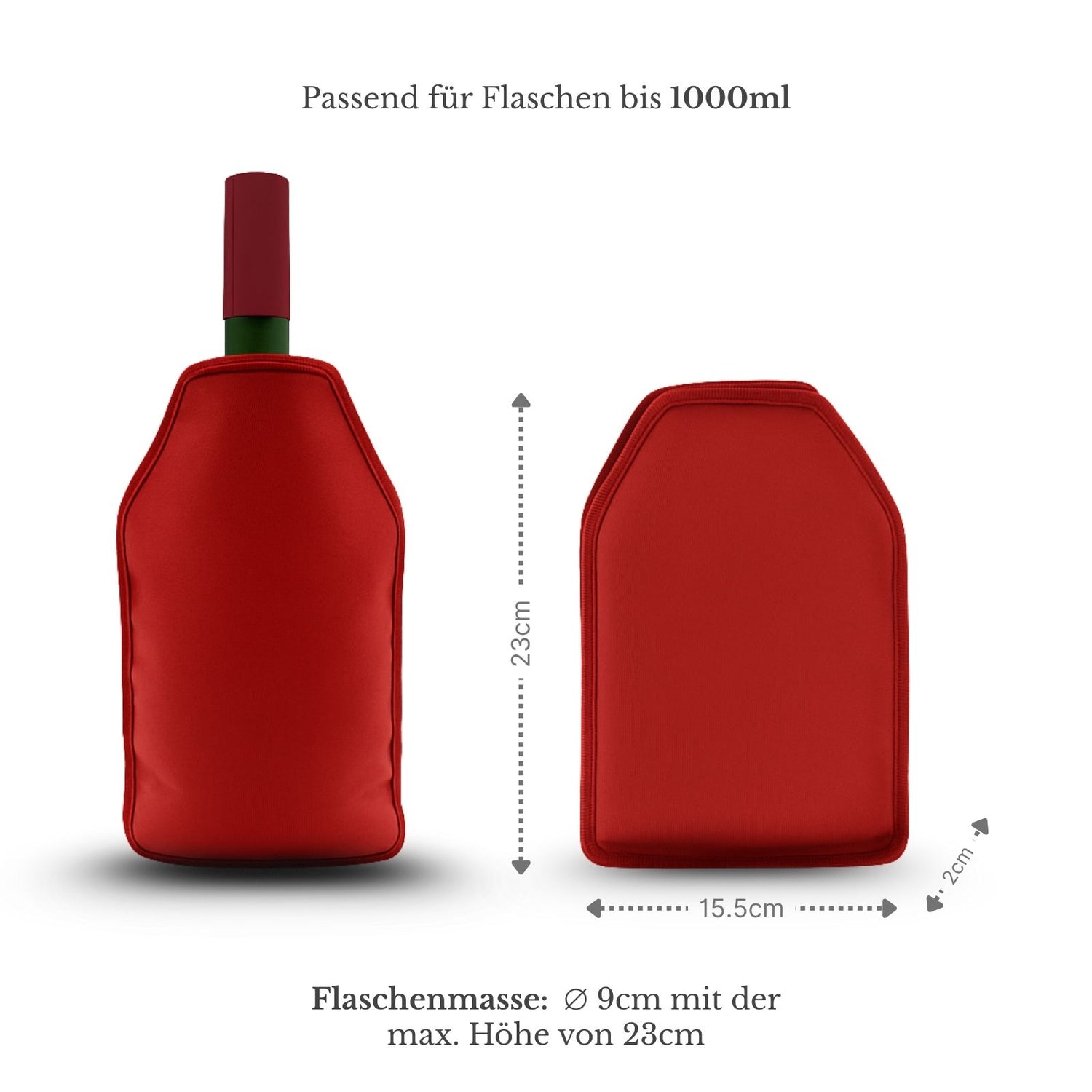 Du freust dich auf einen entspannten Abend im Park, ein Picknick mit Freunden oder ein Gläschen Wein auf dem Balkon – doch kaum ist die Flasche geöffnet, ist sie auch schon wieder warm. Gerade im Sommer oder unterwegs fehlt oft die richtige Lösung, um Wein oder Sekt angenehm temperiert zu geniessen. Dieser Weinflaschen-Kühler sorgt dafür, dass deine Getränke auch ohne Kühlschrank erfrischend kühl bleiben. Das Gel in der Weinkühltasche friert innerhalb weniger Stunden im Gefrierfach und hält Flaschen danach über längere Zeit kühl. Ideal für Picknicks, Camping, Wanderungen oder Strandbesuche. Die Kombination aus Nylon, PVC und Gel sorgt nicht nur für eine effiziente Kühlleistung, sondern auch für hohe Widerstandsfähigkeit und langlebige Nutzung. Elastische Seitenbänder und ein leicht dehnbarer Flaschenhals gewährleisten mehr Flexibilität, selbst wenn der Flaschendurchmesser leicht variiert. Die mit einem Band verstärkte Unterseite der Weinhülle schützt zusätzlich und erleichtert das Aufstellen auf unebenem Untergrund. Mit einem Volumen von 1000ml und einem Durchmesser von 9cm eignet sich die Kühltasche für die meisten handelsüblichen Wein- und Sektflaschen. Der Weinkühler lässt sich flach zusammenfalten (Masse: 15.5cm x 2cm x 23cm) und passt bequem in deinen Rucksack oder die Strandtasche. Das Gewicht von 500g sorgt für Stabilität, ohne dich beim Transport zu belasten. Abgerundet wird die Hülle durch das elegante und schlichte Design in Rot. Das ideale Geschenk für Weinliebhaber! Mach dir mit dieser Weinkühltasche keine Gedanken mehr über warme Getränke zu Hause oder unterwegs.